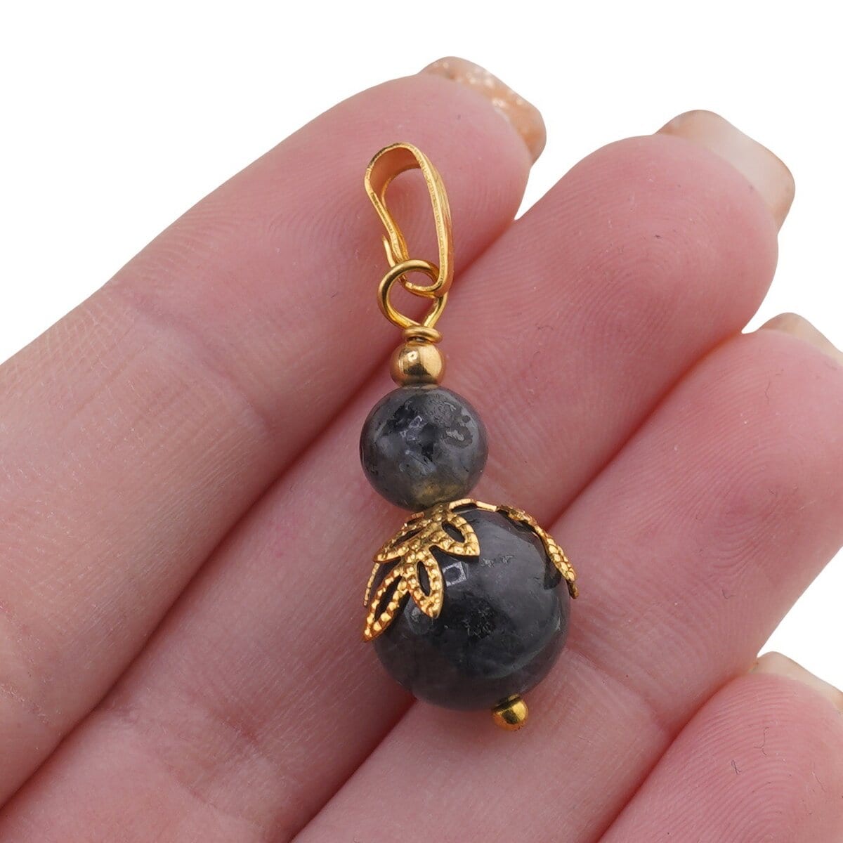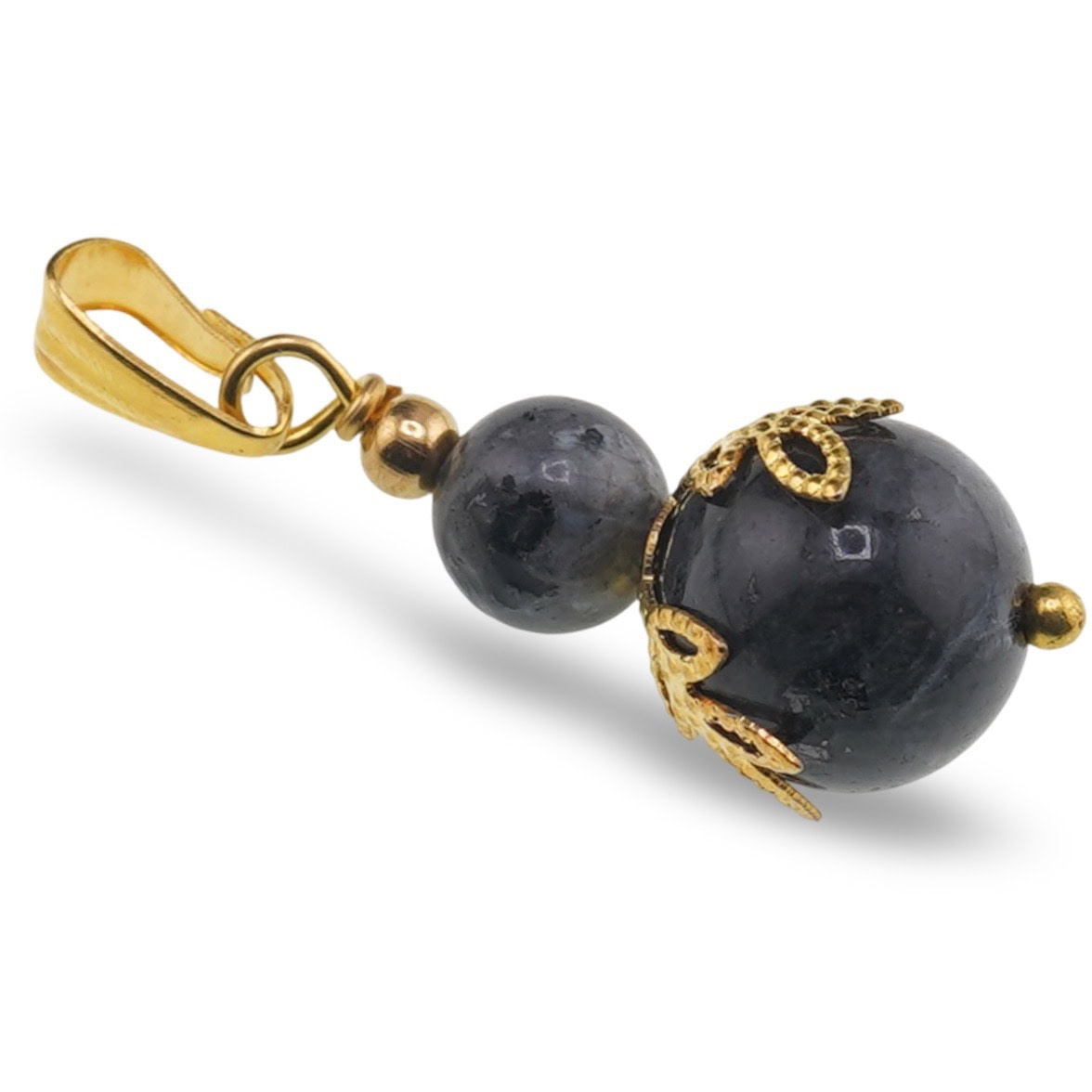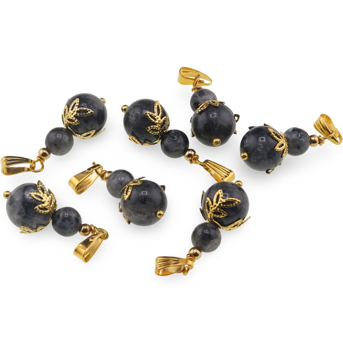 Pandantiv Larvikit sfere și flori aurii, 6–10 mm