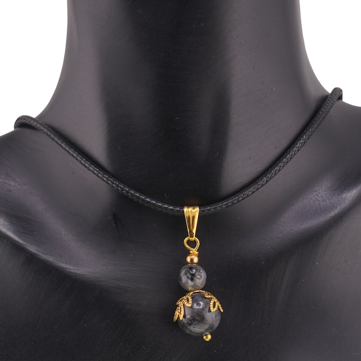 Sferele de larvikit cu diametre între 6 și 10 mm sunt puse în valoare de metalul auriu, care adaugă un accent cald și rafinat. Poți purta pandantivul zilnic, ca talisman de protecție psihică și echilibru, sau îl poți alege pentru momentele în care simți nevoia de mai multă stabilitate interioară. Se potrivește atât singur, cât și în combinație cu alte bijuterii fine.