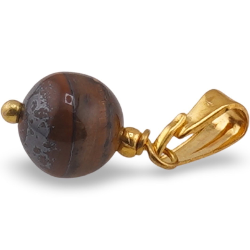 Pandantiv Ochi de tigru sferă 8mm cu metal auriu
