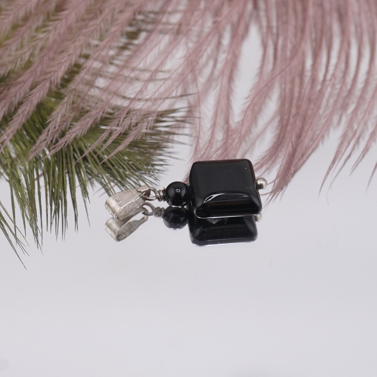 Pandantiv Onix patrat 10mm si sfera 4mm
