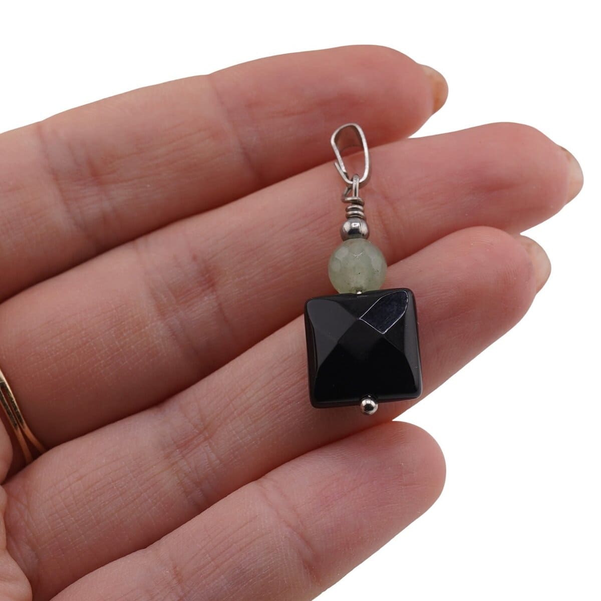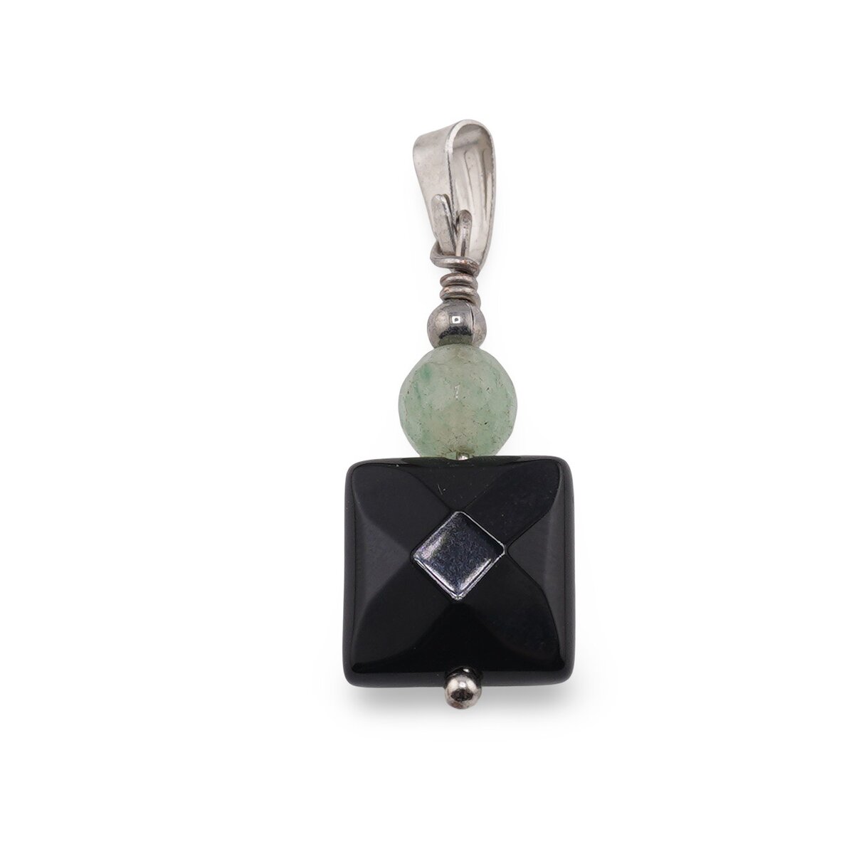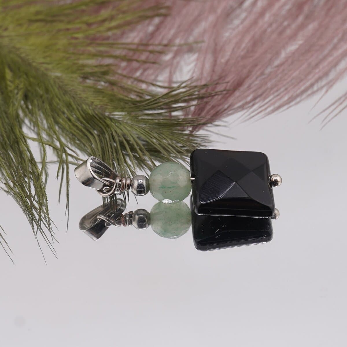 Pandantiv Onix patrat fațetat 10mm și Aventurin sferă fațetată 6mm