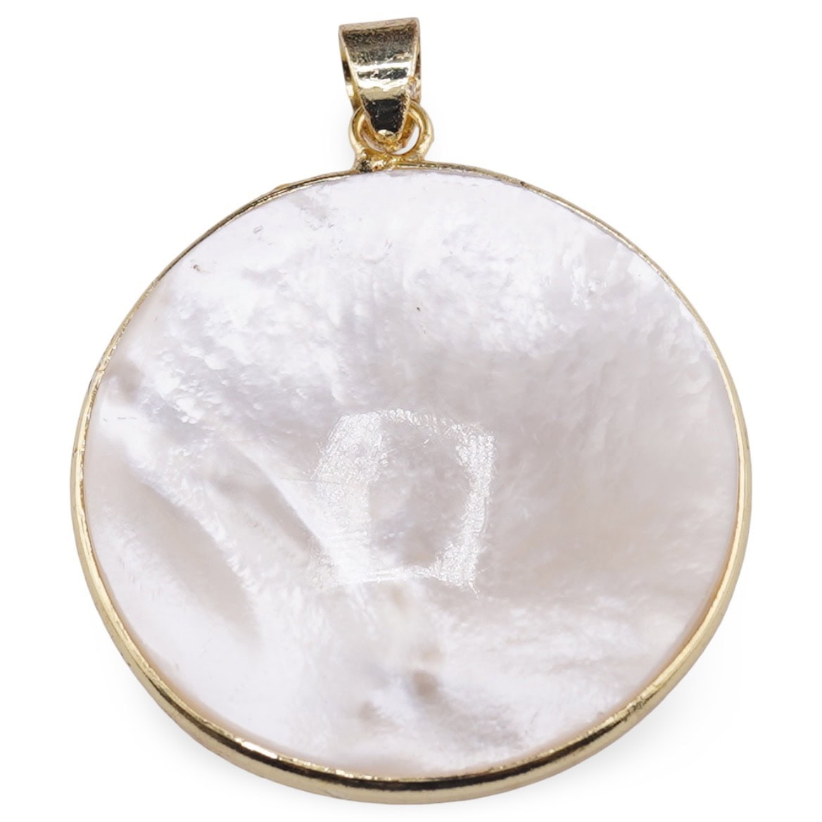 Pandantiv rotund din Sidef alb cu montura aurie - 31,5mm