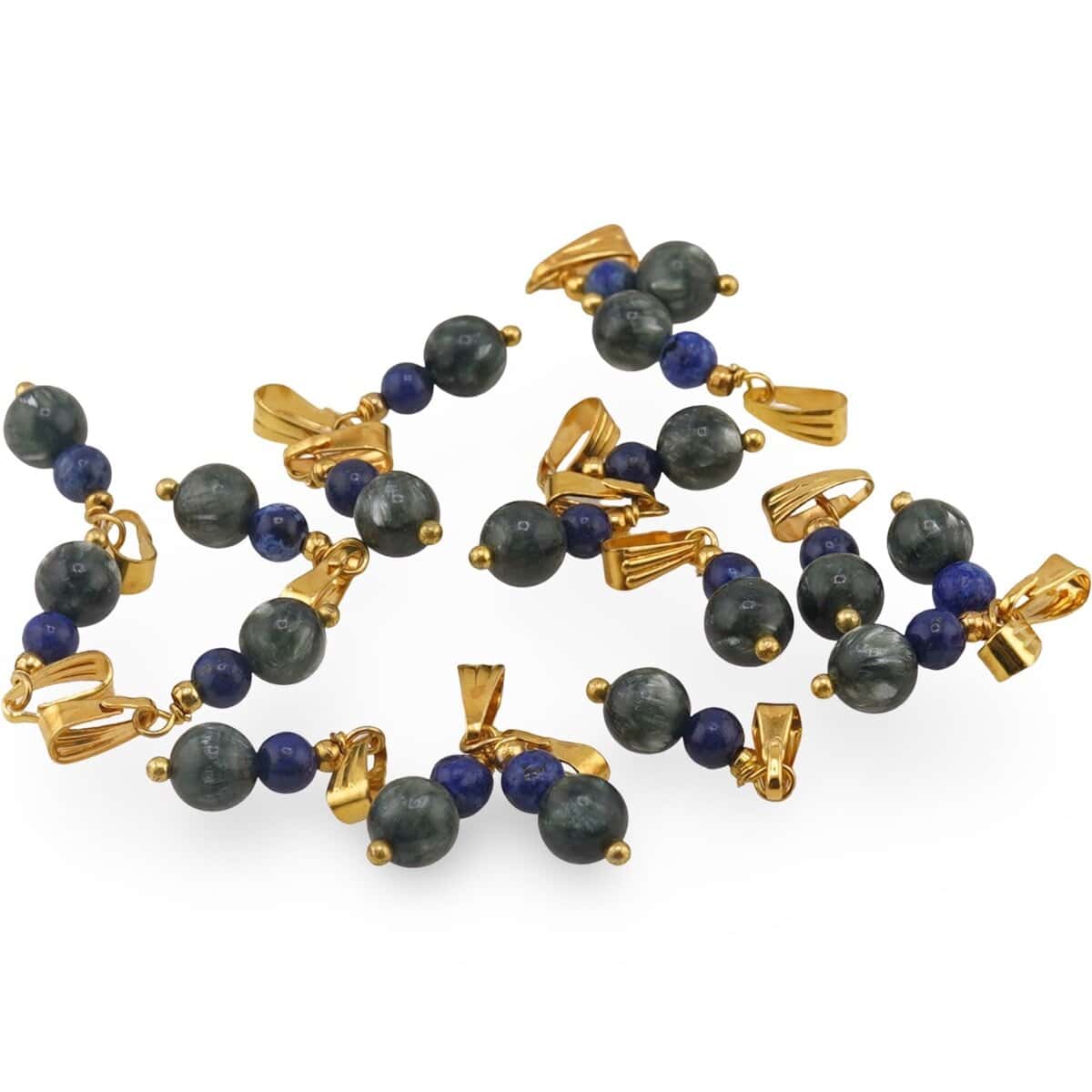 Pandantiv Serafinit sfera 6mm și Lapis lazuli sfera 4mm cu metal auriu