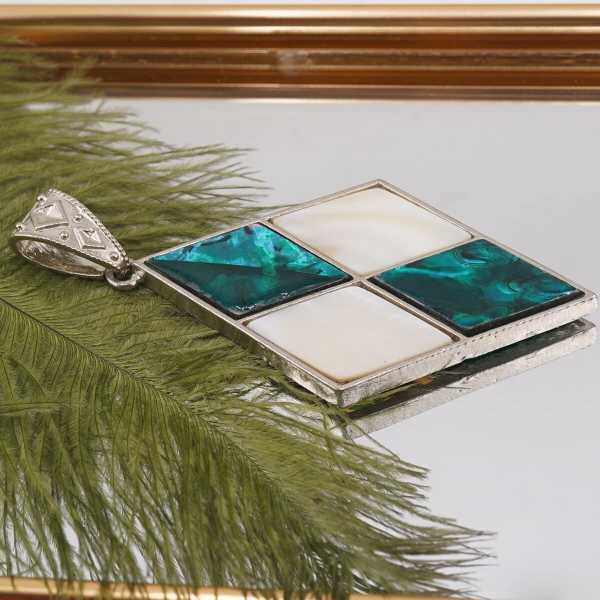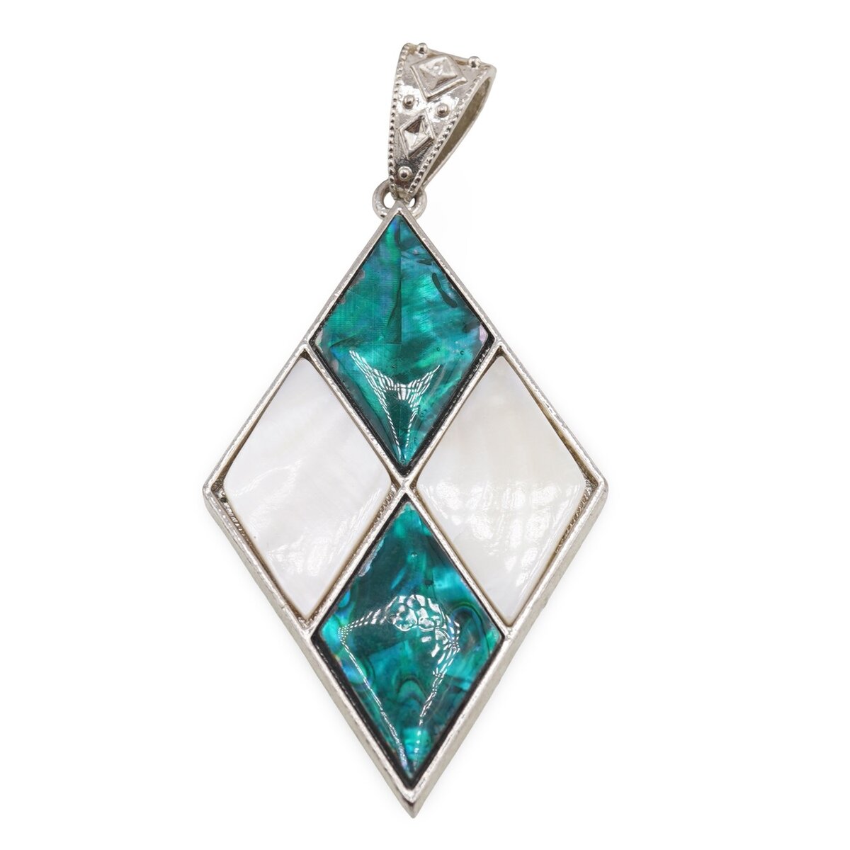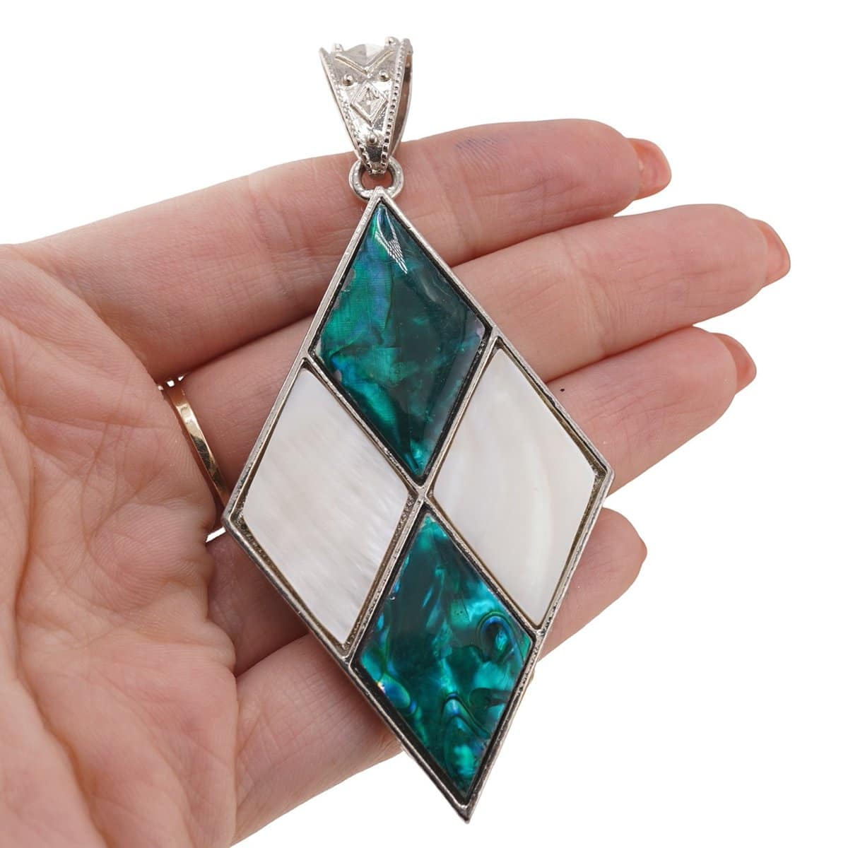 Pandantiv Sidef alb și Scoica abalone romburi