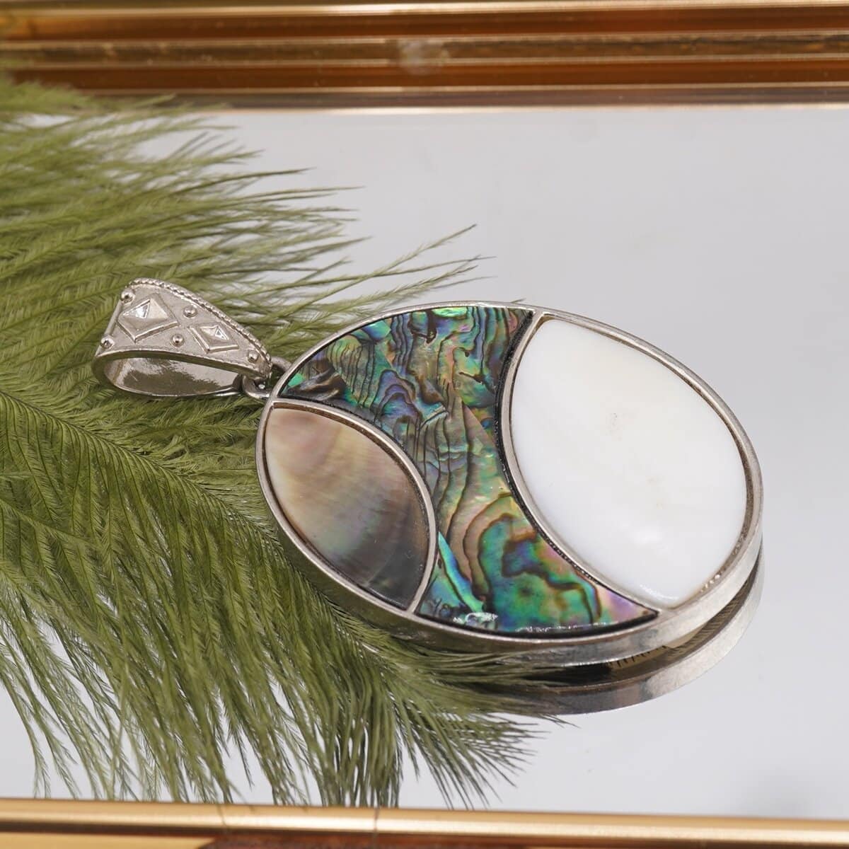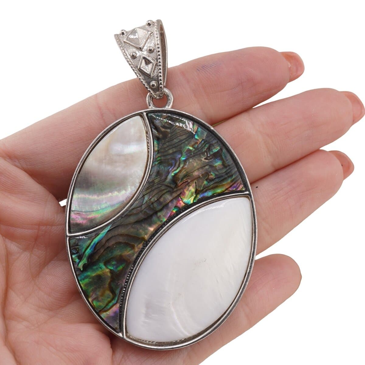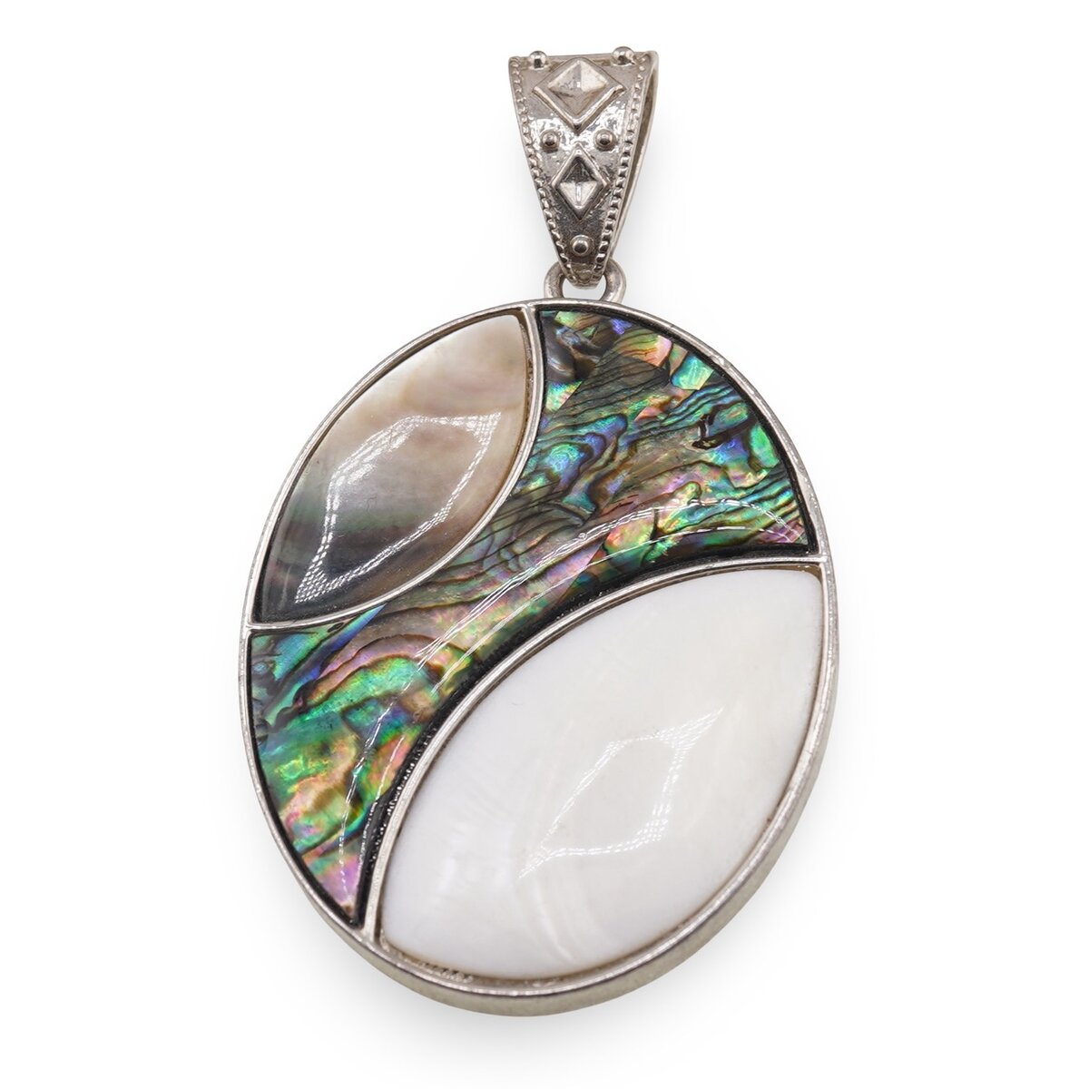 Pandantiv Sidef alb, Sidef gri și Scoica Abalone oval