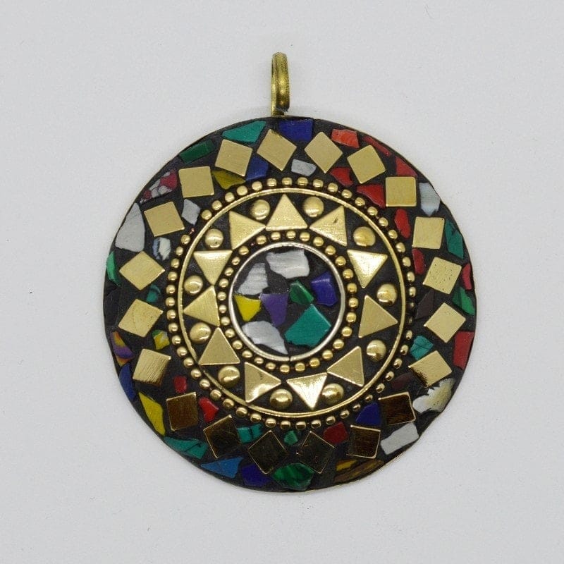 Pandantiv tibetan confectionat manual in India cu alama si pietre semipretioase, model M11