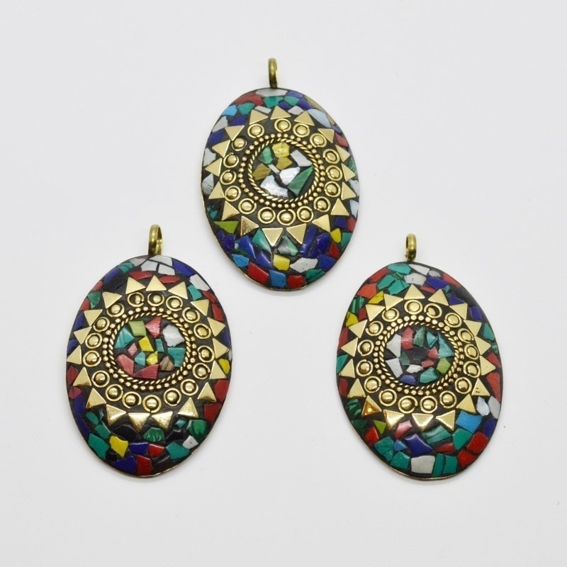 Pandantiv tibetan confectionat manual in India cu alama si pietre semipretioase, model M228