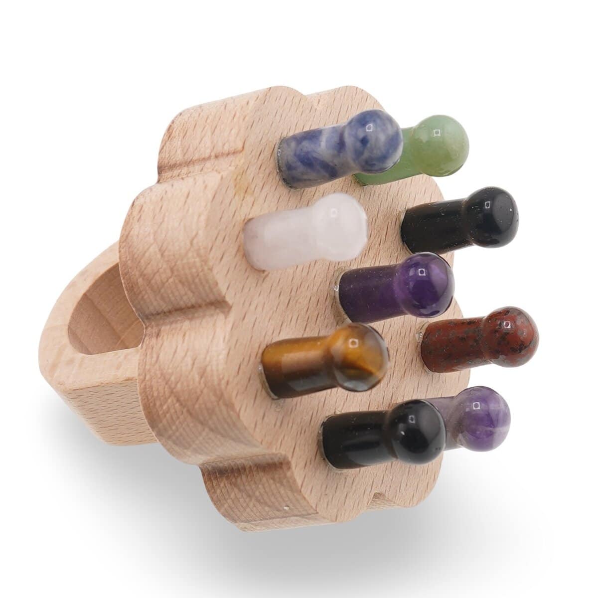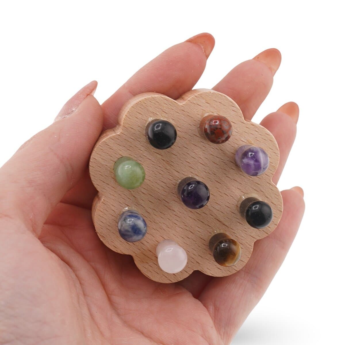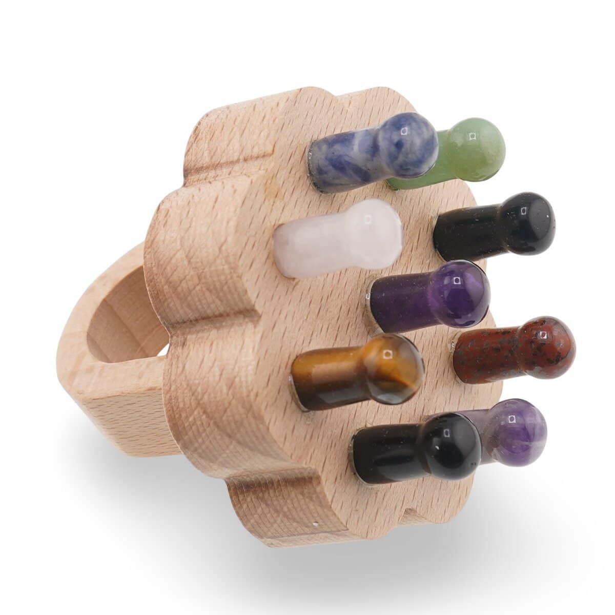 Pieptene rotund pentru masaj cu mix de cristale naturale, 6 cm