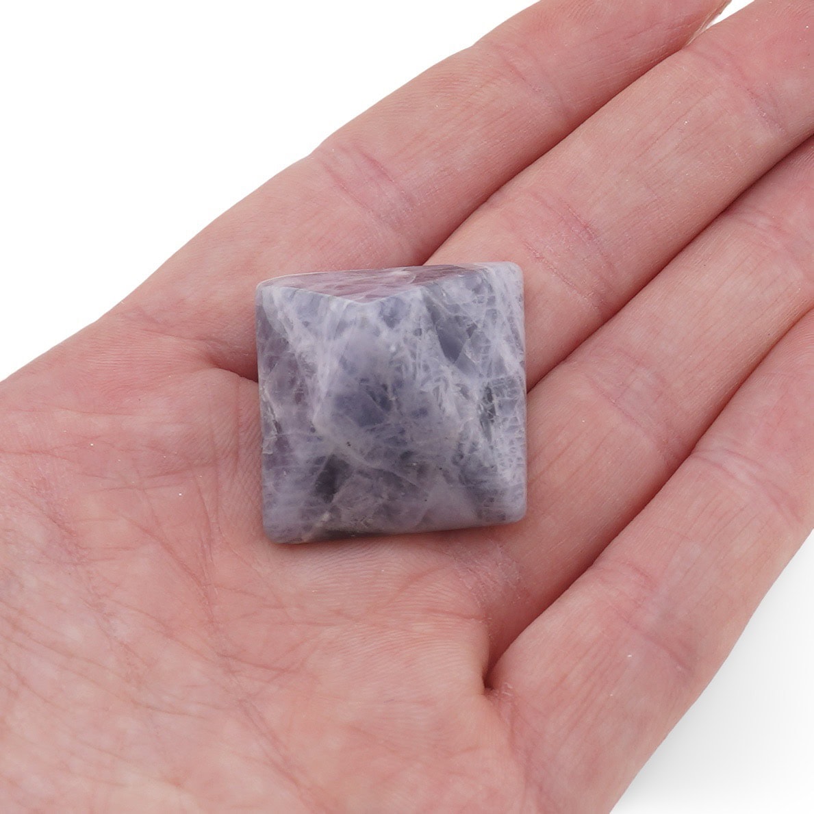 Având dimensiuni de aproximativ 25 x 25 x 22 mm și o bază de 25 mm, această piramidă din sodalit este potrivită pentru spații mici și pentru utilizare zilnică. Poate fi folosită ca accent decorativ discret, ca piesă pentru altar personal sau ca mic obiect de intenție atunci când meditezi, scrii, studiezi ori lucrezi într-un mediu care cere concentrare.