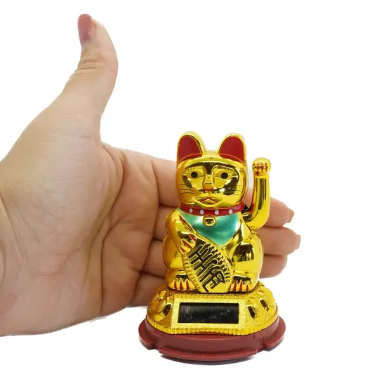 Pisica norocoasă Maneki Neko solara aurie, cu pepite - 9cm