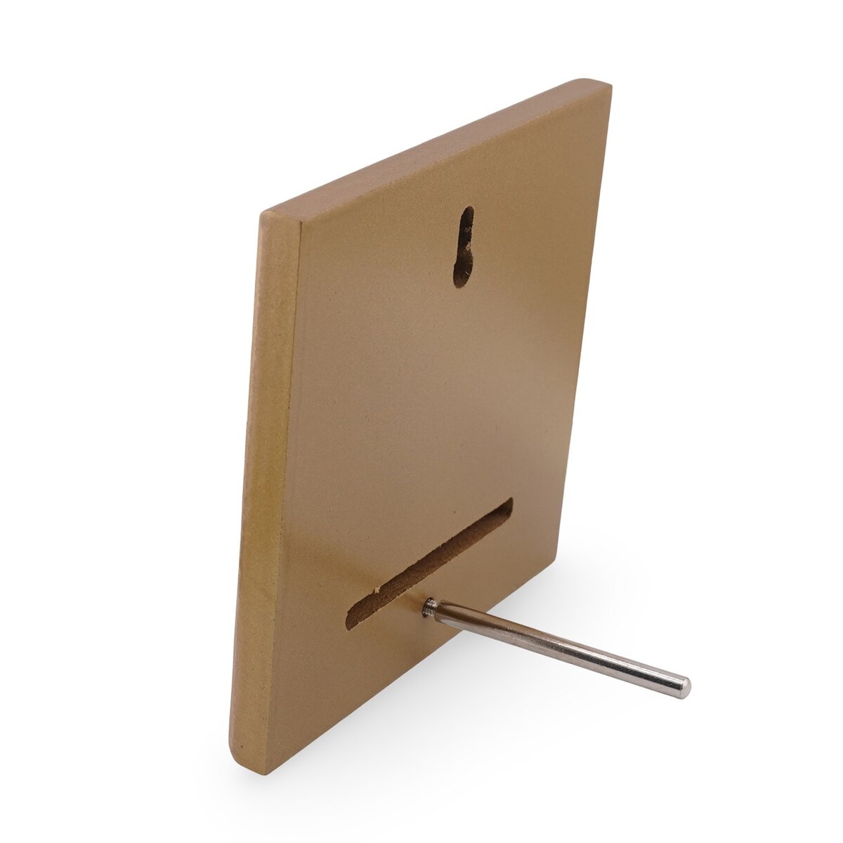 Realizată din lemn și finisată cu atenție, are un format compact, de aproximativ 13,5 x 13,5 x 1 cm, astfel încât o poți așeza ușor pe birou, noptieră sau o poliță. Suprafața plăcută la atingere și accentele aurii și roșii îți oferă un obiect decorativ plăcut, cu prezență calmă și simbolică.
