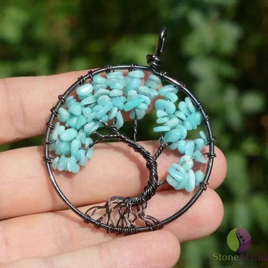 Pomul vietii confectionat cu pietre semipretioase naturale, Amazonit bleu si metal antichizat. Se ofera certificat de garantie!
