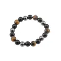 Bratara pentru protectie Ochi de tigru, Hematit si Obsidian negru sfere pe elastic, 10mm