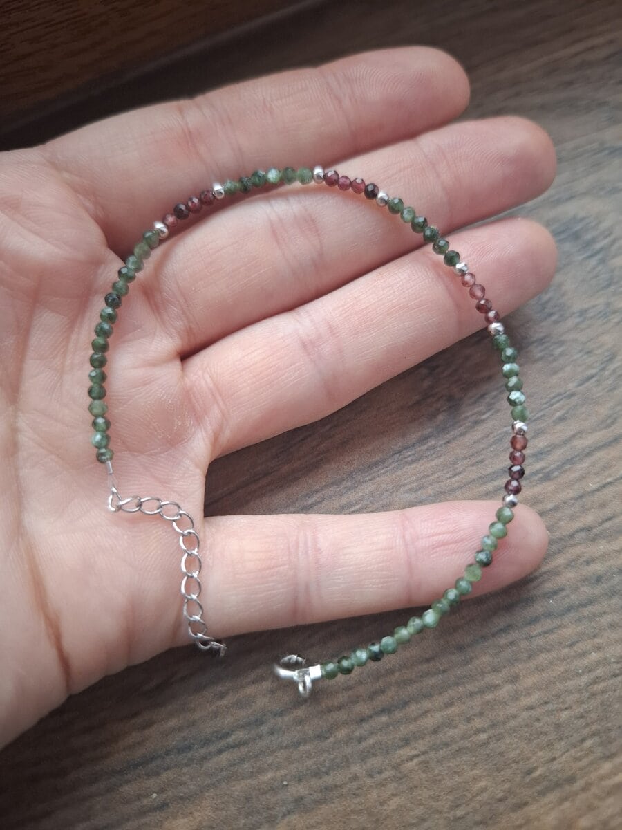 Bratara Serafinit si Granat Rhodolit sfere microfatetate 2mm cu argint 925