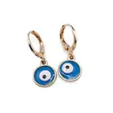 Cercei aurii cu agatatoare leverback, Ochiul protector albastru inchis, 10mm