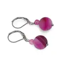 Cercei cu agatatoare Agat roz dantelat mat, sfere 10mm si 4mm