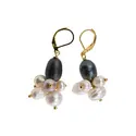 Cercei cu agatatoare Perle cultura albe si negre cu inox auriu