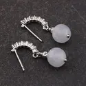 Cercei cu surub Acvamarin si baza de Argint 925 semirotunda cu zirconii, 8mm