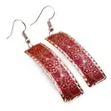 Cercei din cupru dreptunghiulari, model frunze rosii
