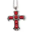 Colier cu pandantiv argintiu cruce din Coral rosu, 8cm