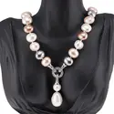 Colier Perle de Mallorca ovale multicolor cu pandantiv, 15mm
