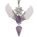 Pandantiv angelic cu Merkaba, Pendul din Ametist si Aripi Sidef, 10cm