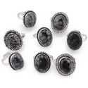Inel reglabil cu montura argintie Obsidian fulg de nea