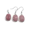 Set Cercei cu agatatoare si Pandantiv Rodonit roz oval cu montura argintie, 20mm