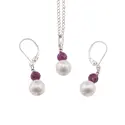 Set Cercei cu agatatoare si pandantiv Rubin fatetat si Perle de cultura A+ cu argint 925