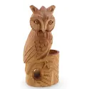 Suport creioane vintage din lemn sculptat manual, in forma de bufniță, 22cm