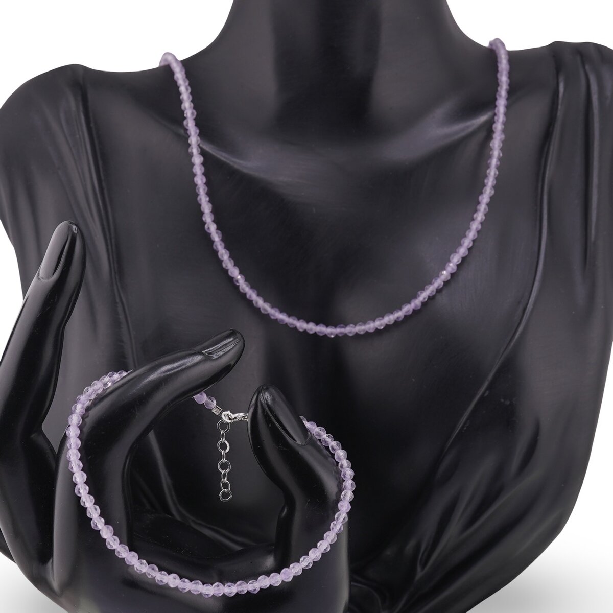 Set brățară și colier Ametist lavandă sfere fațetate, 3 mm