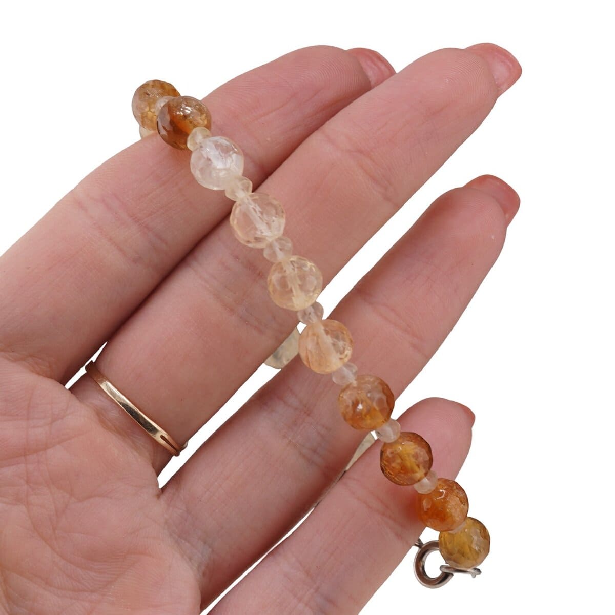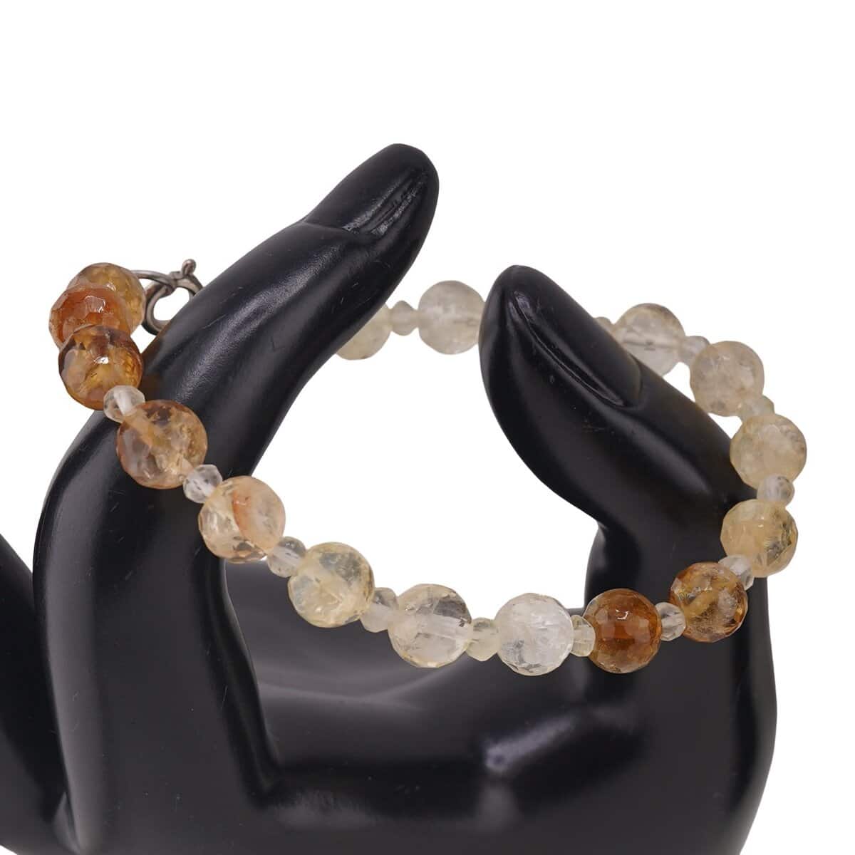 Setul de bratara si colier din citrin, cu sfere fatetate de 7 mm si discuri fatetate de 4 mm, este creat pentru tine daca simti nevoia de mai multa claritate, energie si incredere in propriile resurse. Nuanța calda de galben a cristalelor naturale atrage imediat privirea si transmite o stare de optimism, amintind de lumina blanda a soarelui.