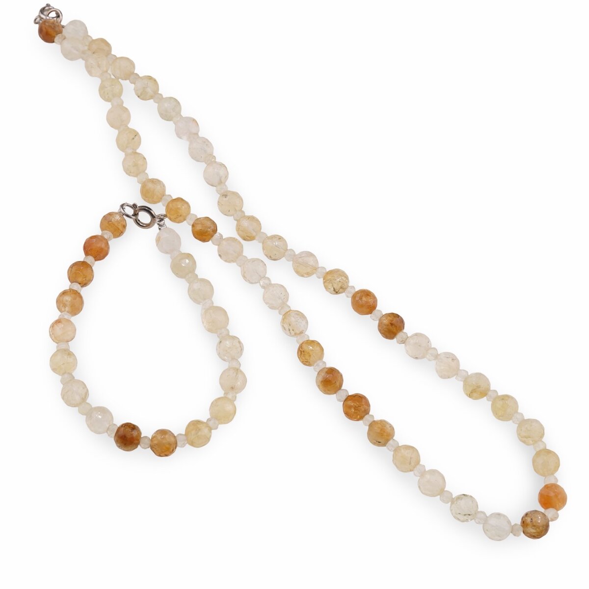 Set bratara si colier Citrin sfere fatetate 7mm si discuri fatetate 4mm