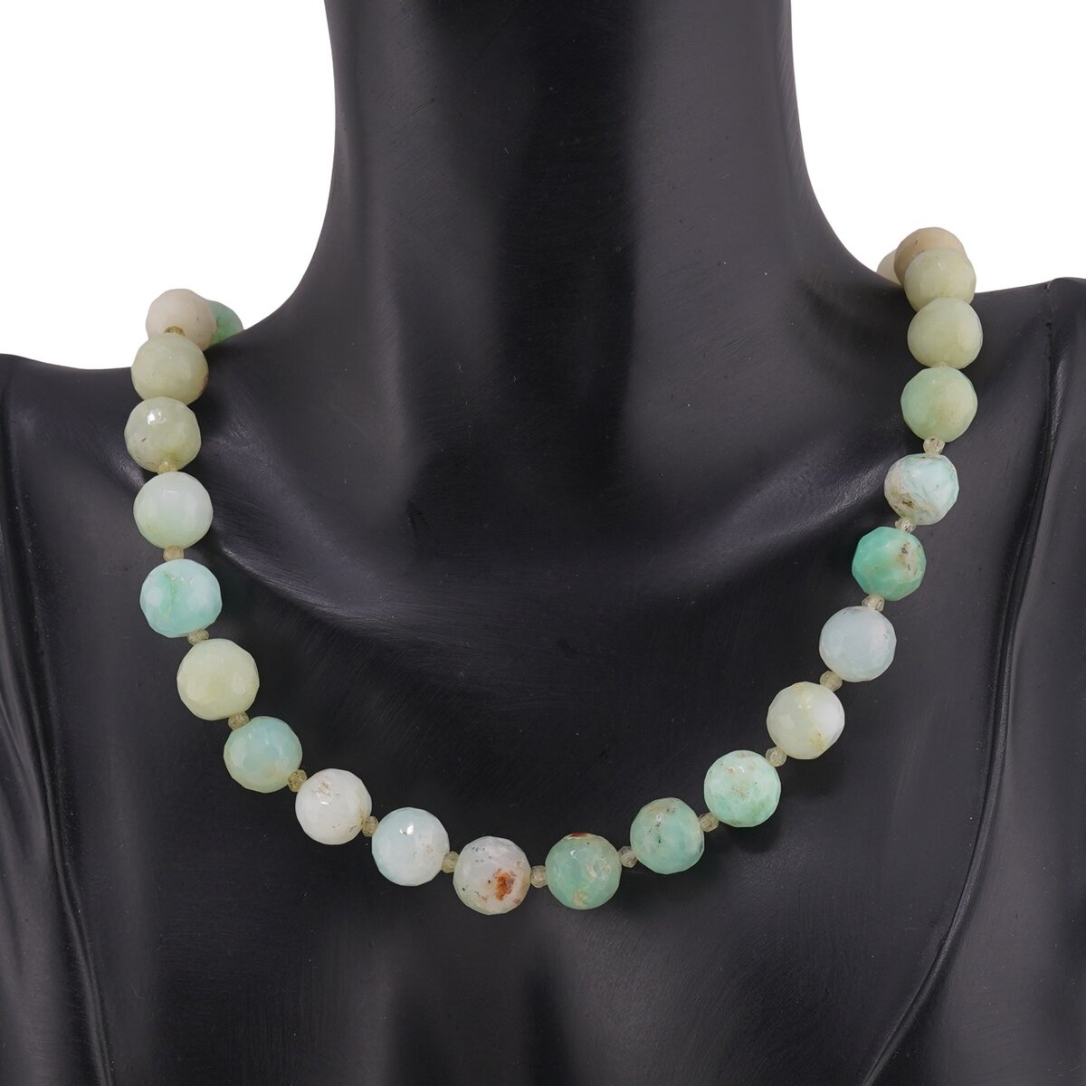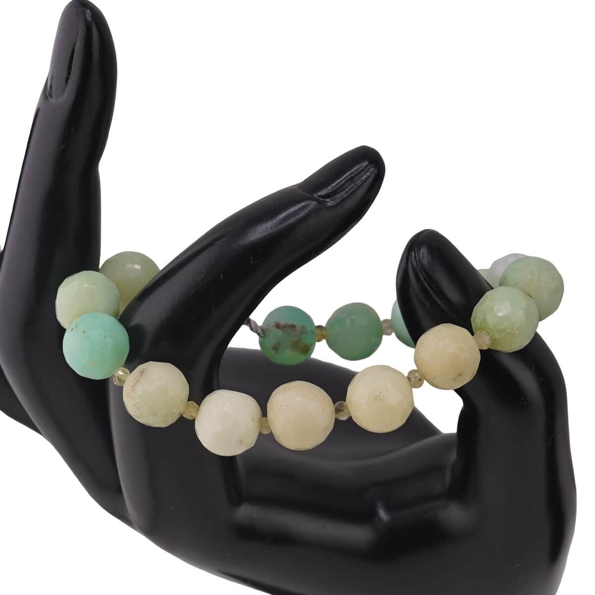 Set bratara si colier Crisopraz sfere fatetate 9-10mm si discuri fatetate 3mm
