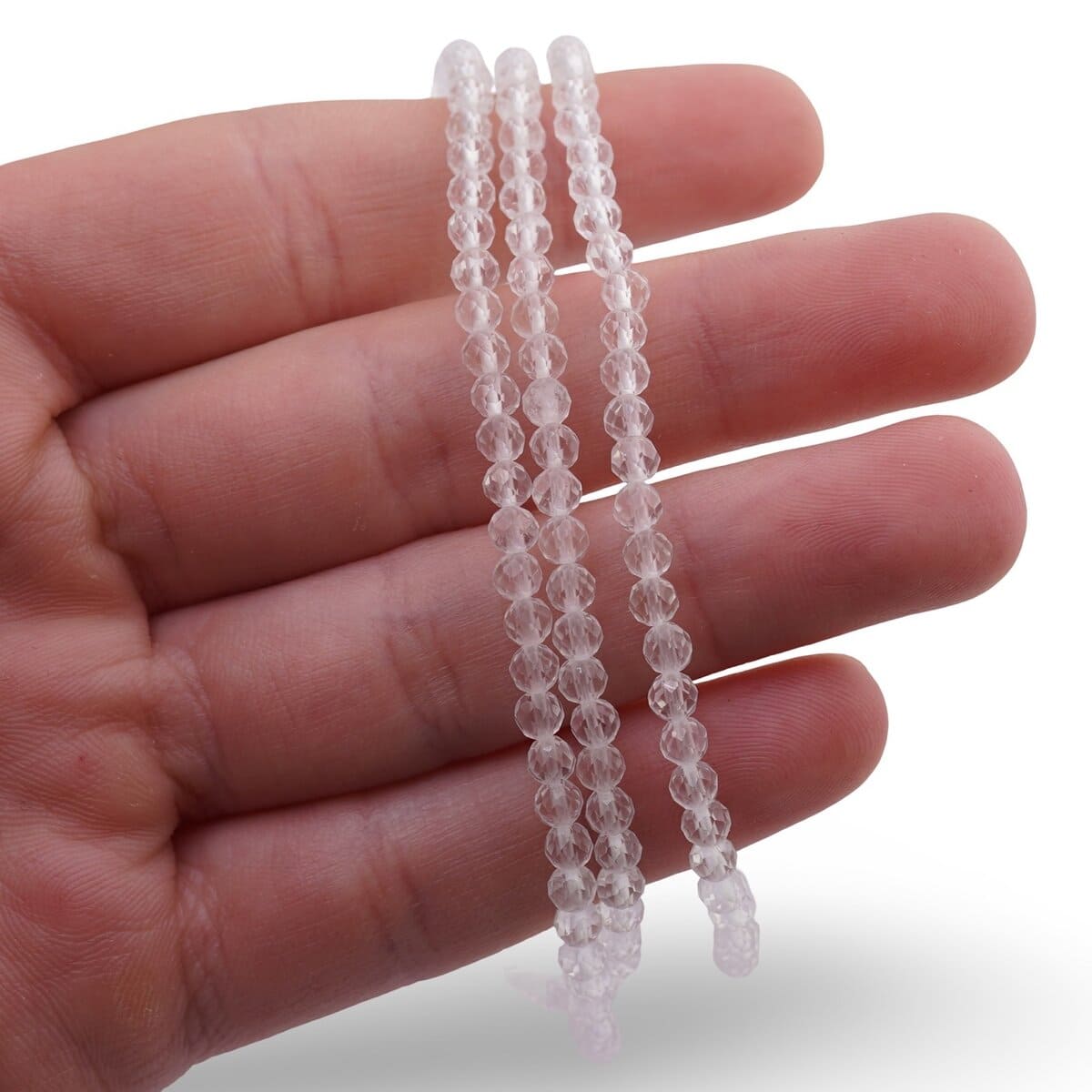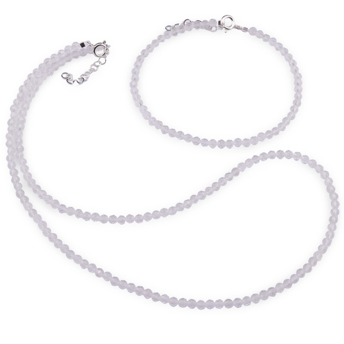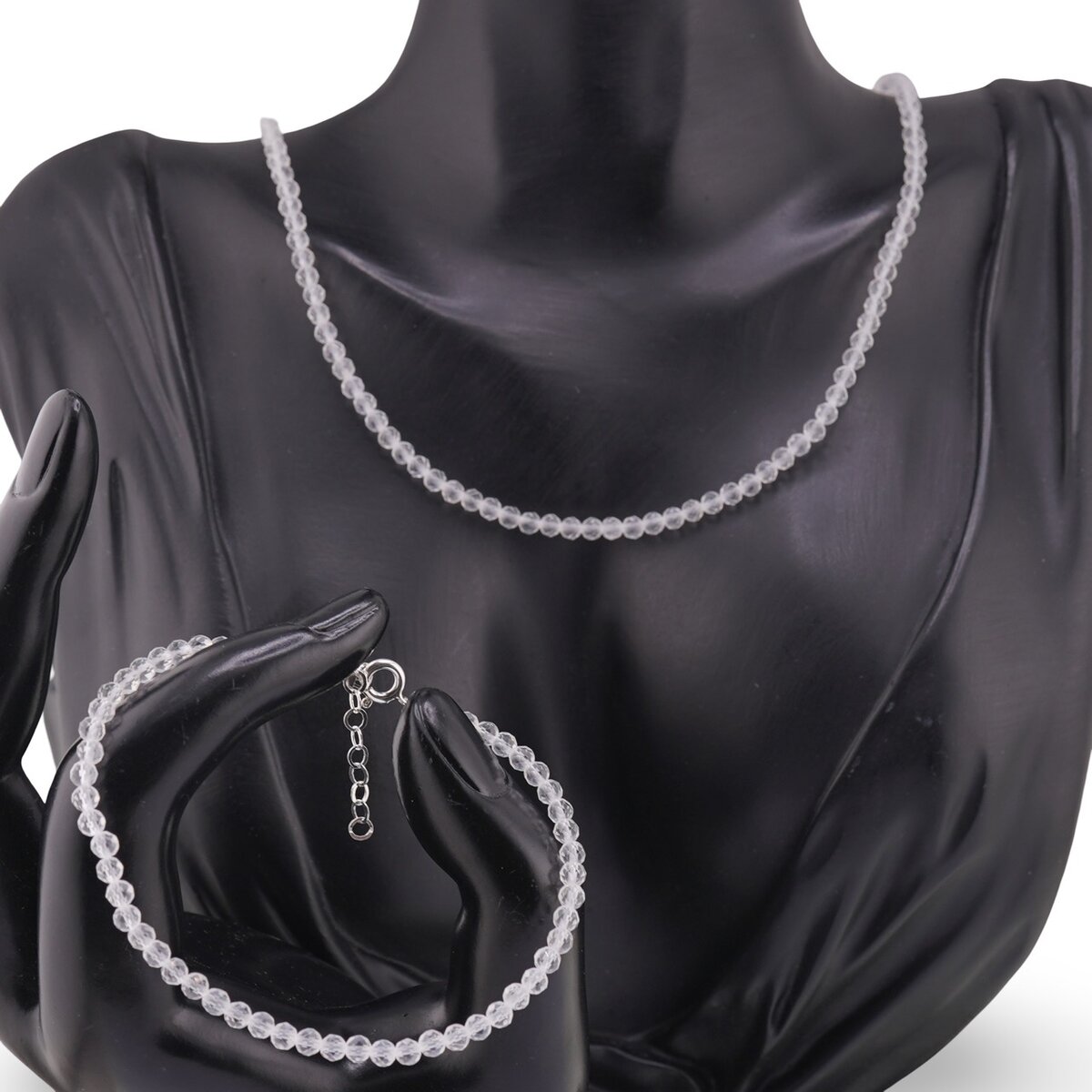 Set brățară și colier Cristal de stâncă sfere fațetate, 3mm
