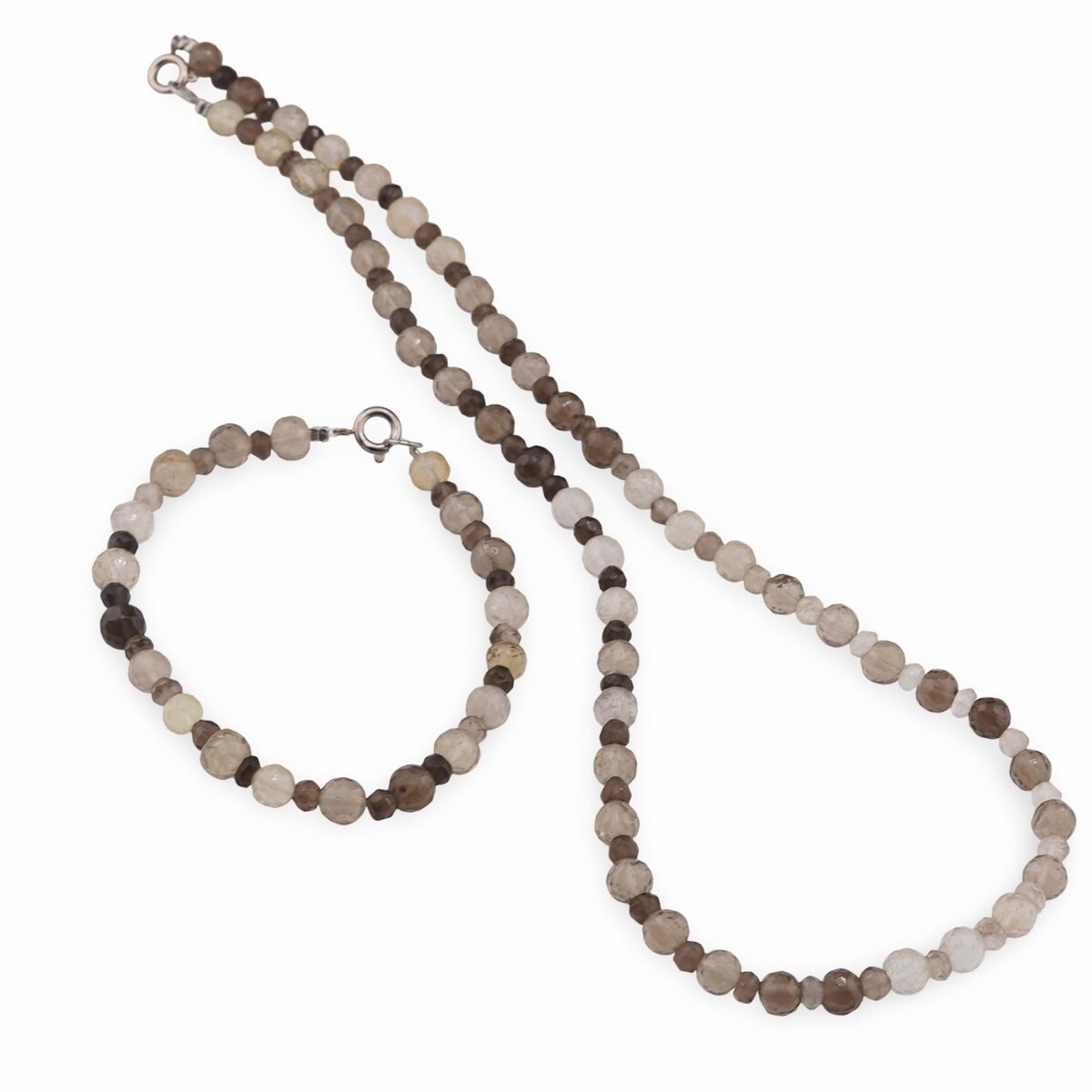 Set bratara si colier Cuart fumuriu sfere fațetate 6mm și discuri fațetate 4mm