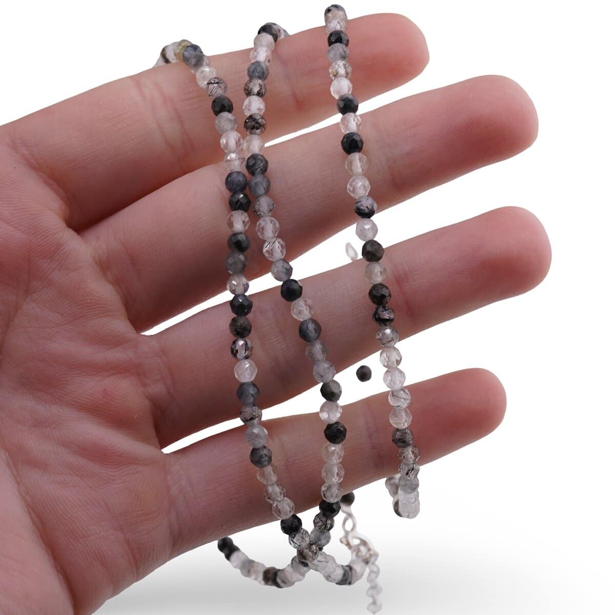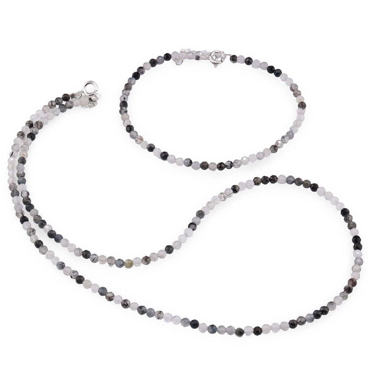 Set brățară și colier Cuart turmalinat sfere fațetate, 3mm