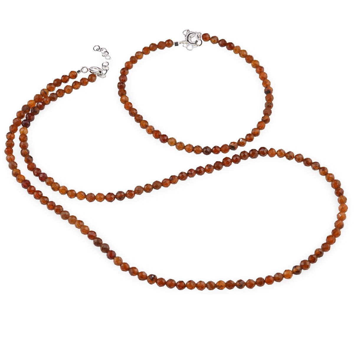 Set bratara si colier Granat Hessonit degrade sfere fatetate, 4mm