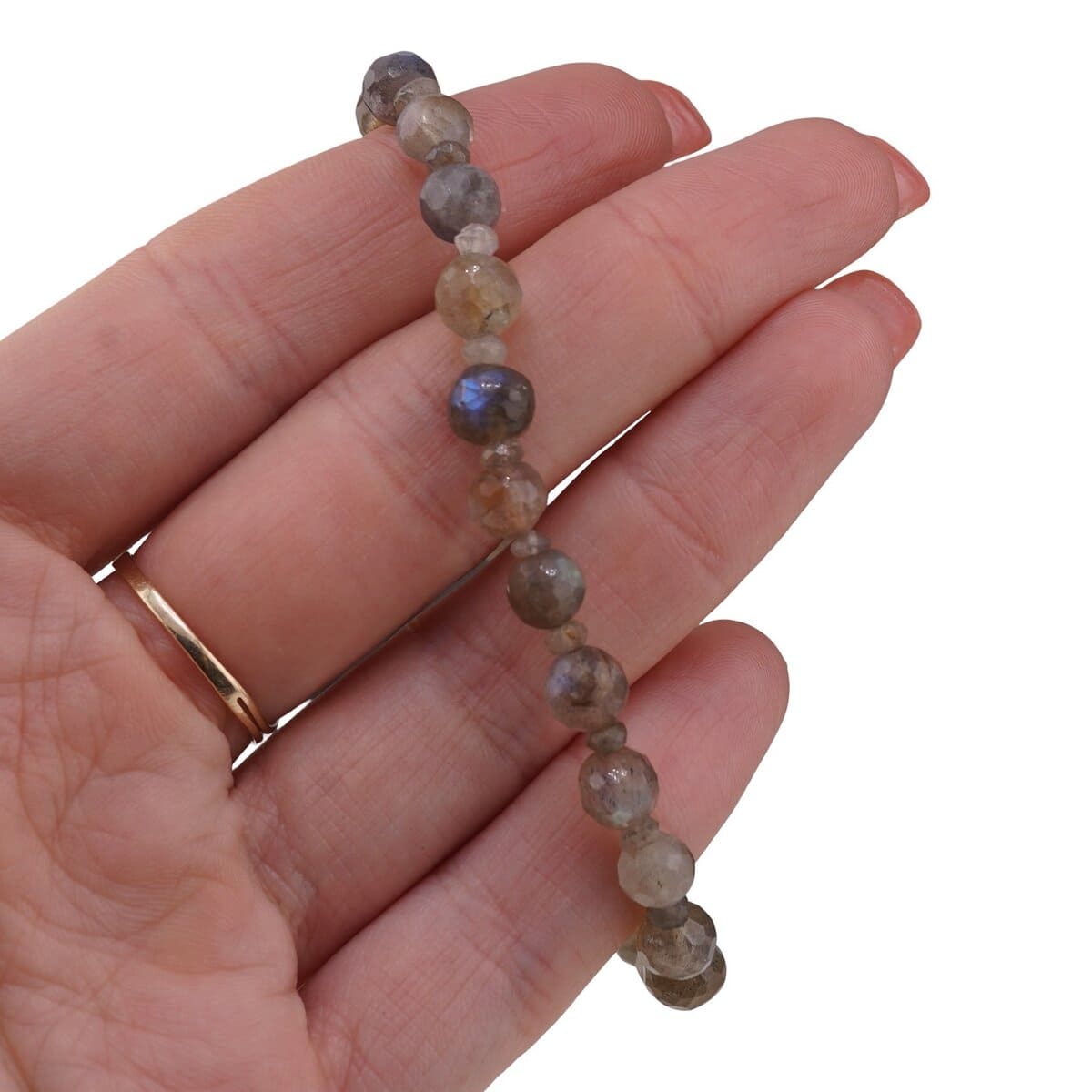 Setul cu bratara si colier din labradorit, realizat din sfere fatetate de 6 mm si discuri fatetate de 3 mm, este o alegere potrivita pentru tine daca iti doresti o bijuterie discreta, dar plina de simbolism. Nuanta de gri specifica labradoritului este pusa in valoare de fatetare, astfel incat cristalele naturale reflecta lumina in mod subtil, oferind un aspect elegant si usor misterios.