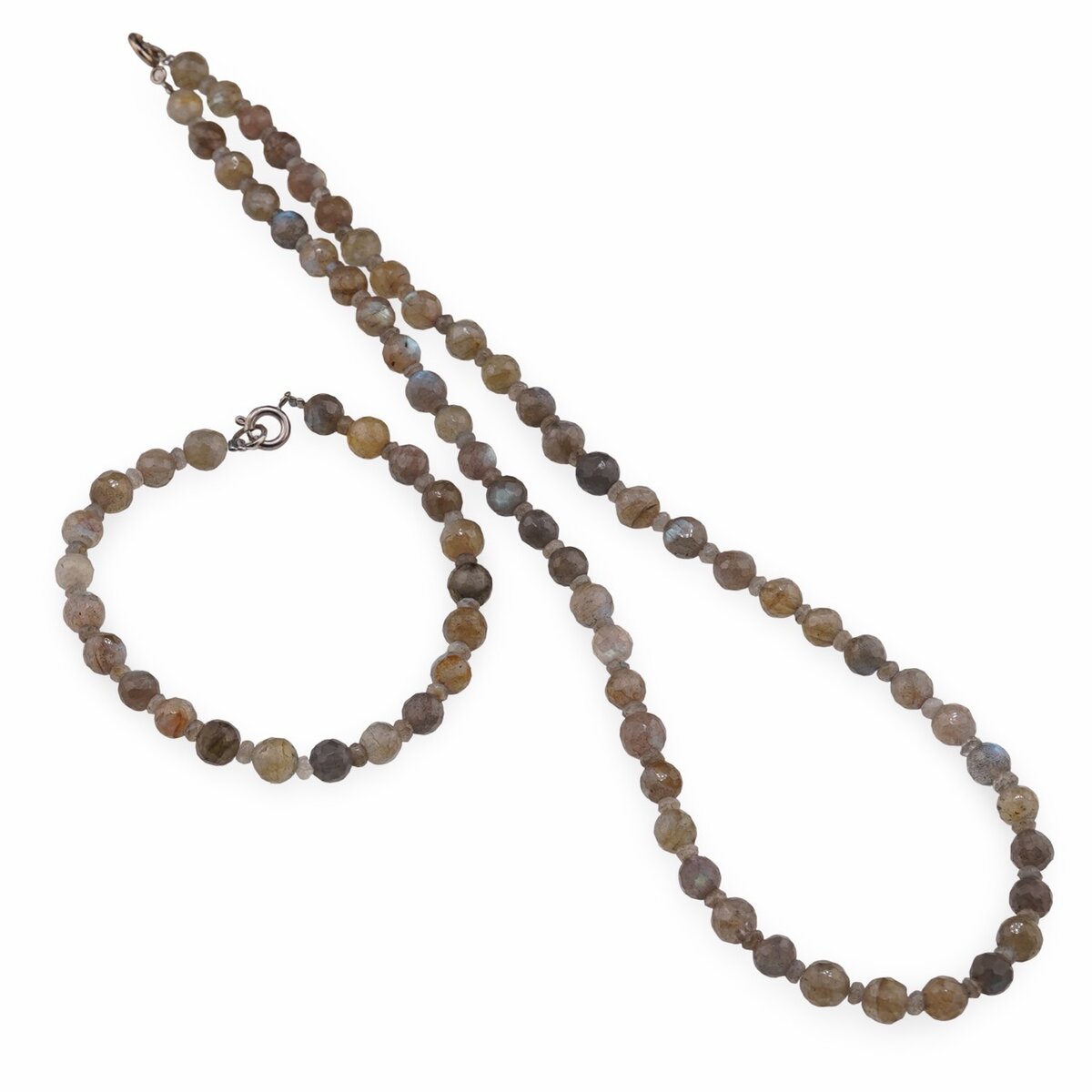 Set bratara si colier Labradorit sfere fatetate 6mm si discuri fatetate 3mm
