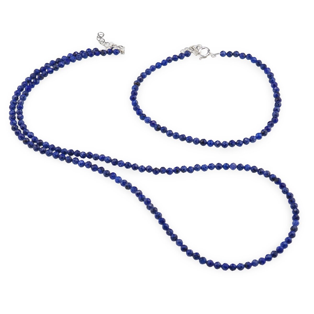 Set brățară și colier Lapis Lazuli sfere fațetate, 3mm