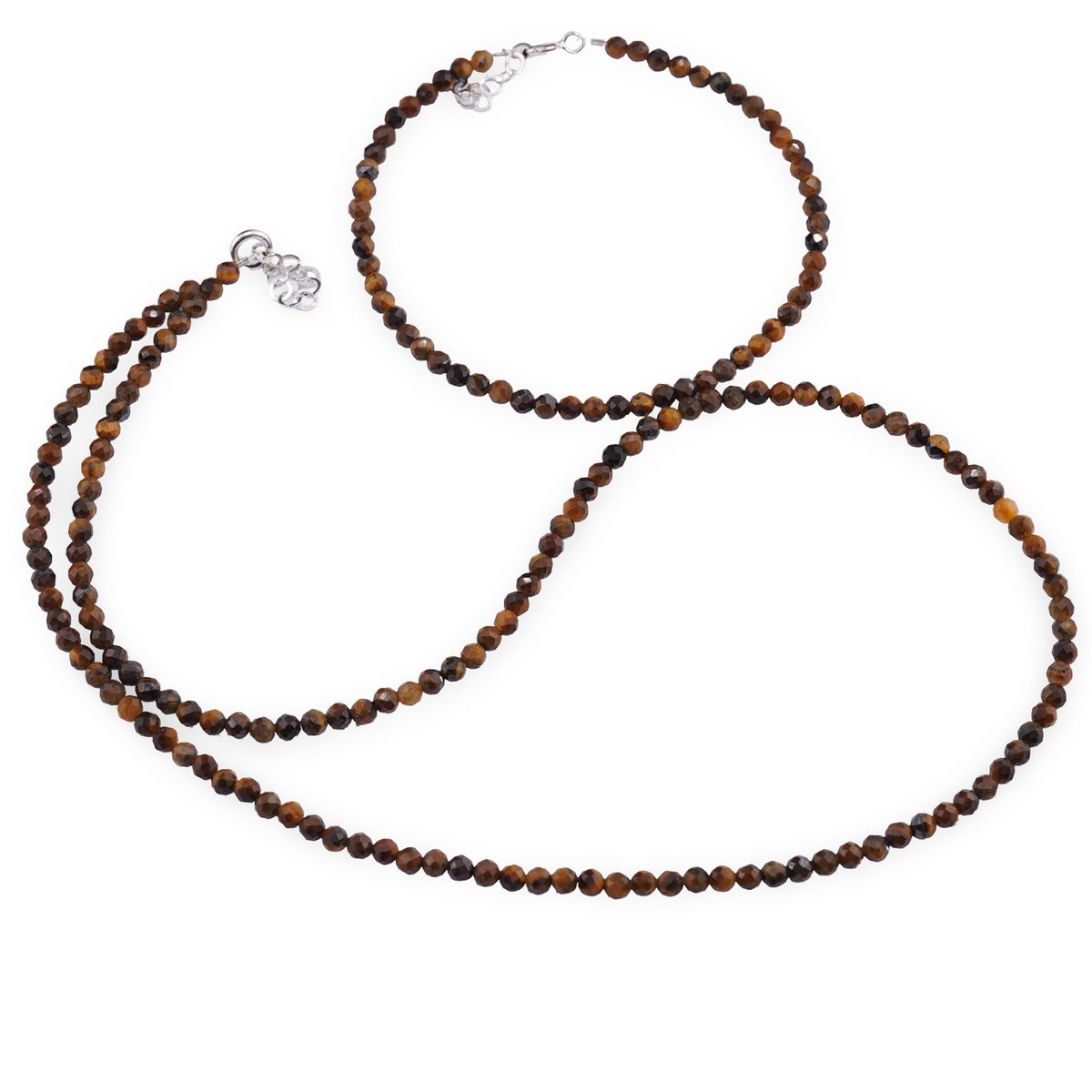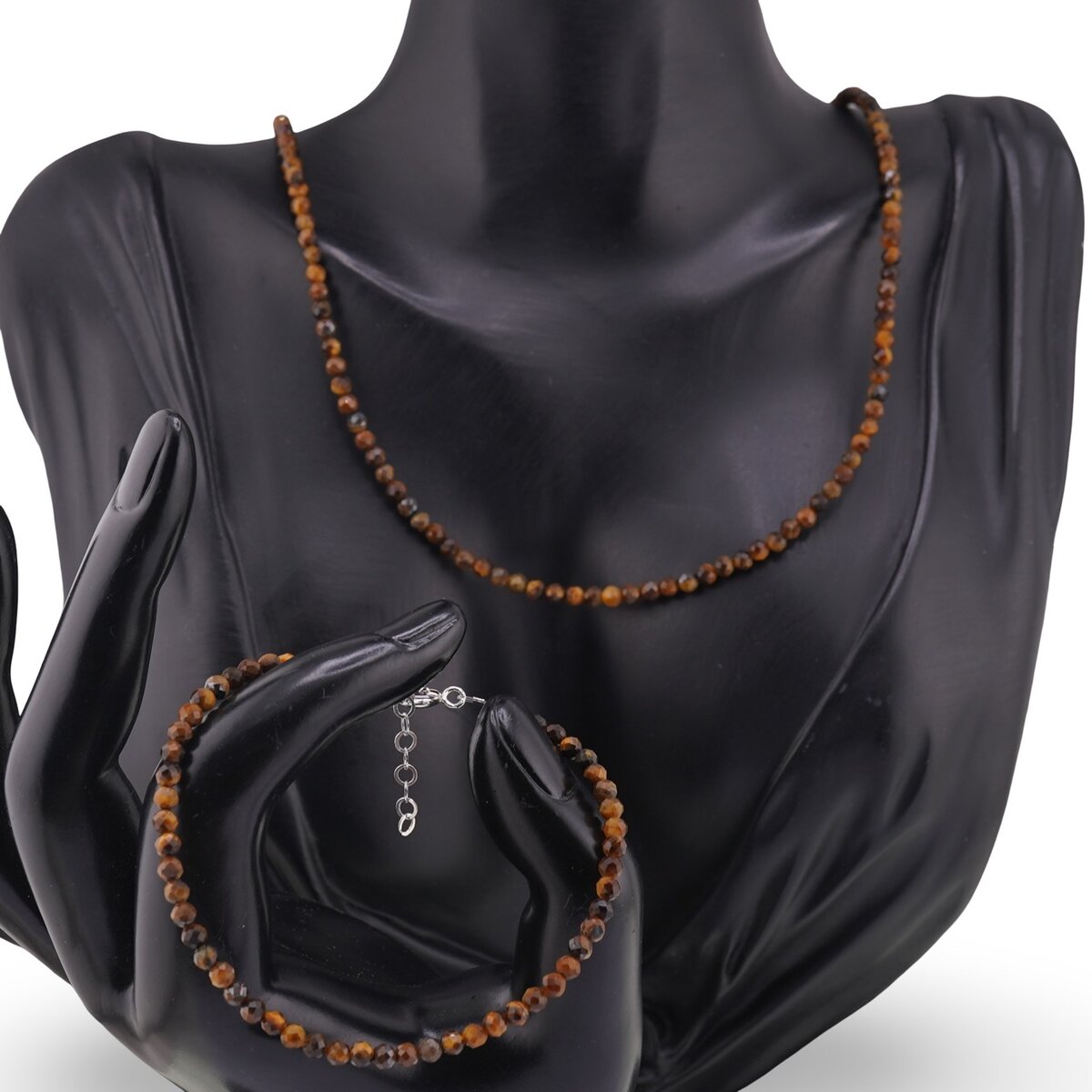 Set bratara si colier Ochi de tigru sfere fatetate 3,5mm