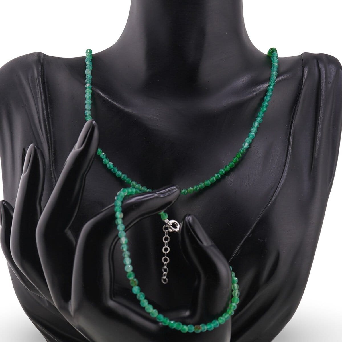 Set bratara si colier Onix verde degrade sfere fatetate, 3mm
