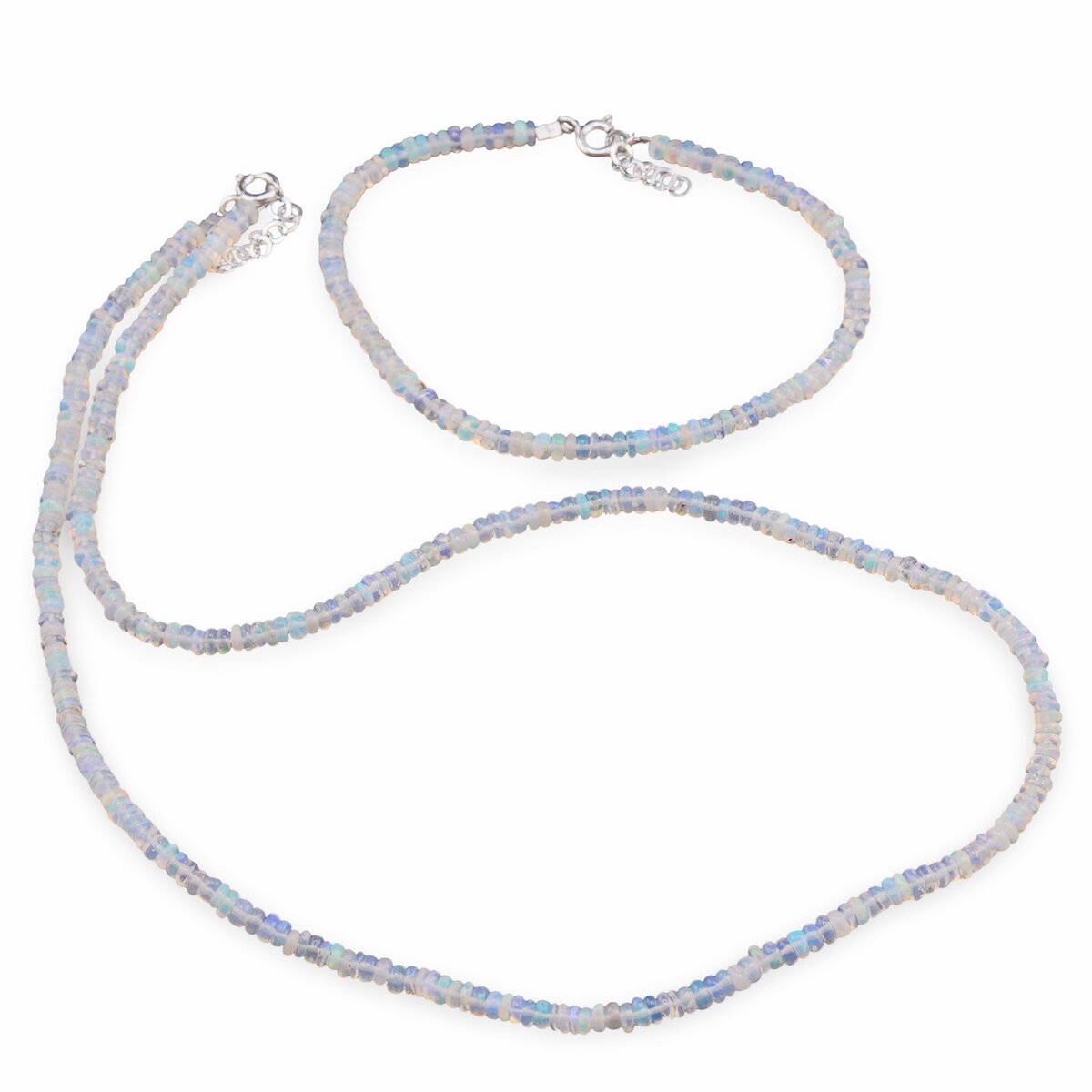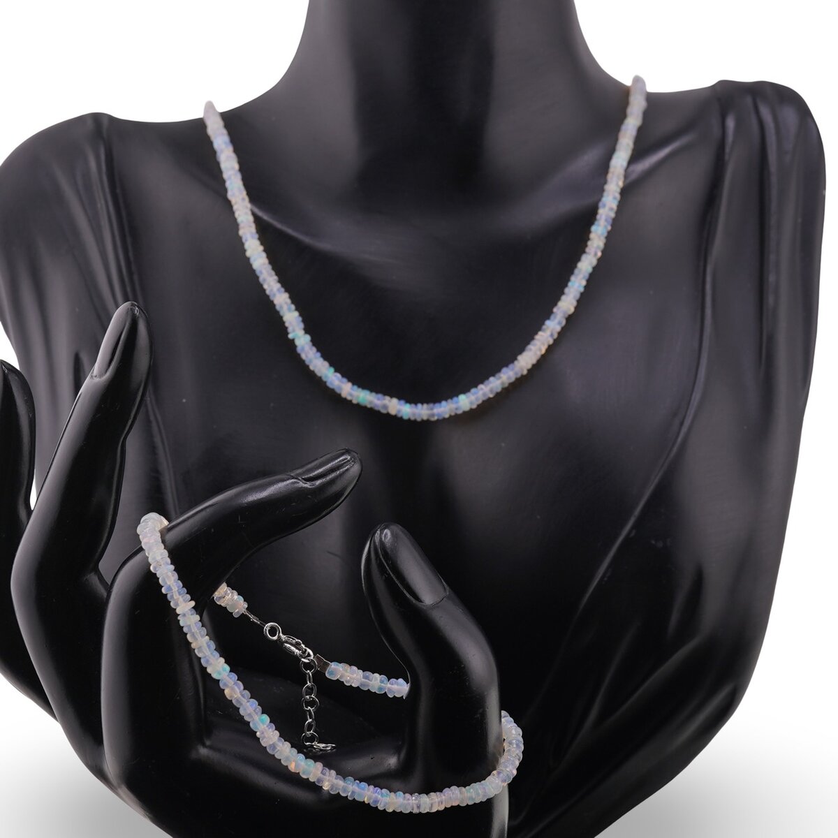 Descoperă un set de bijuterii creat pentru a-ți pune în valoare stilul de zi cu zi: Set brățară și colier din Opal etiopian de foc, cu cristale naturale șlefuite în rondele fine de 3–3,5 mm. Tonurile diafane de alb, specifice acestui opal, prind viață în lumină prin reflexii calde, oferind o strălucire discretă care îți însoțește ținutele fără să le acapareze.