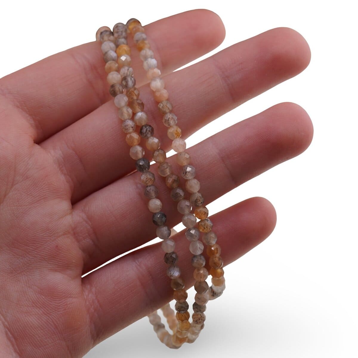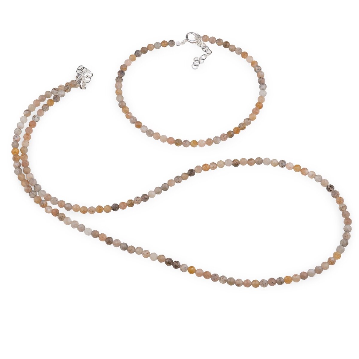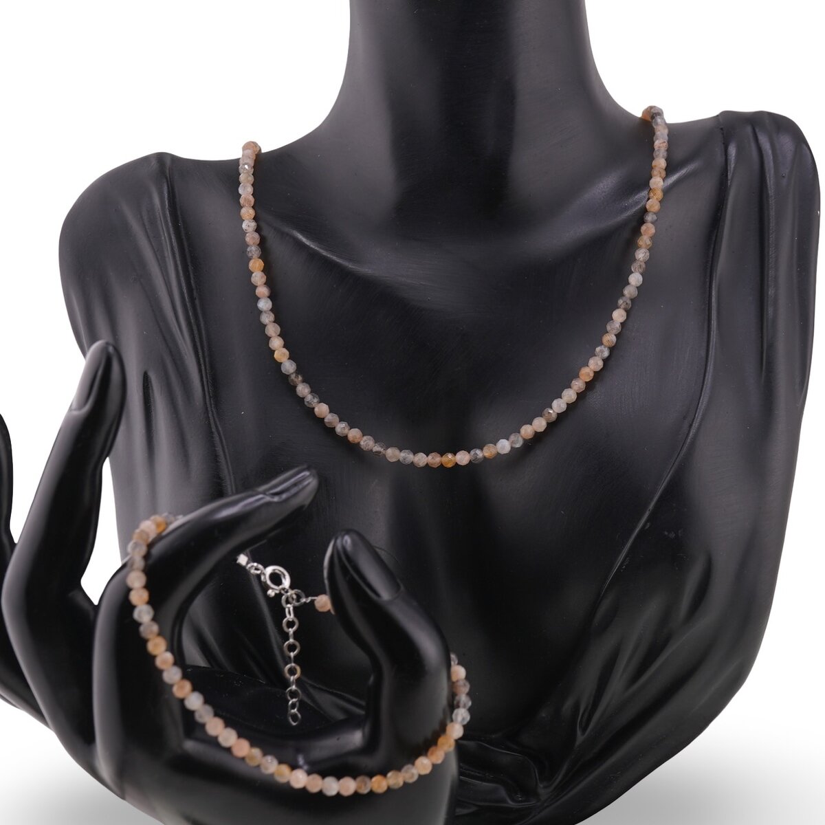 Set brățară și colier Piatra Lunii gri, sfere fațetate 3,5 mm