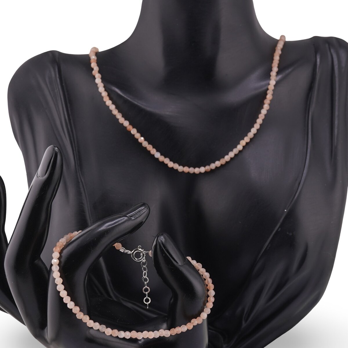 Descoperă un set de bijuterii creat pentru echilibru și rafinament în fiecare zi. Brățara și colierul cu Piatra Lunii în nuanțe calde de maro-portocaliu prind frumos lumina datorită sferelor fațetate de 3 mm, oferind o strălucire discretă și elegantă. Colierul are o lungime de 43 cm, așezându-se plăcut la baza gâtului, iar brățara completează armonios lookul, fie că le porți împreună sau separat. Cristalele sunt naturale 100%, cunoscute sub numele de feldspat ortoclazic, Moonstone sau Piatra intuiției, și aduc o notă liniștitoare ținutelor de zi cu zi.