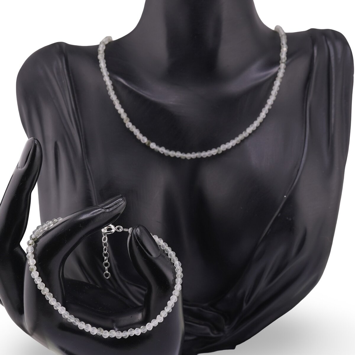 Set bratara si colier Prasiolit sfere fatetate, 3mm