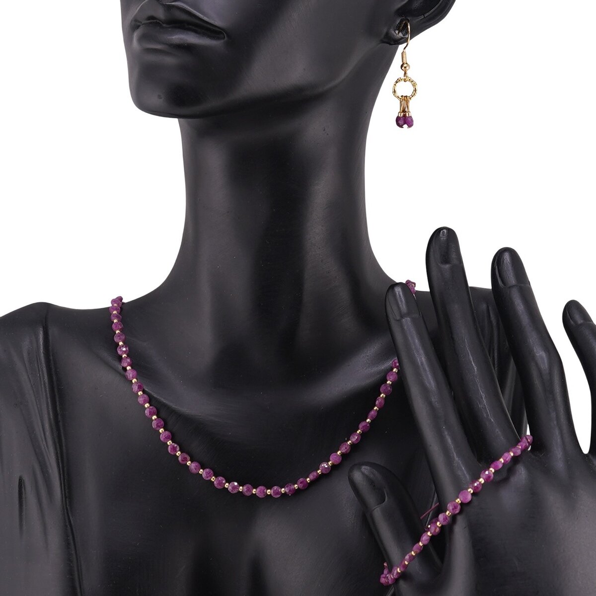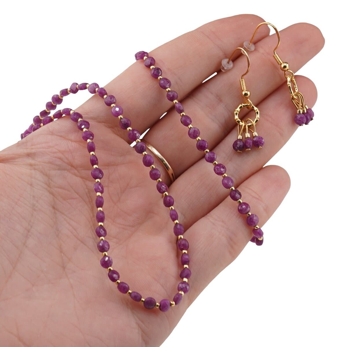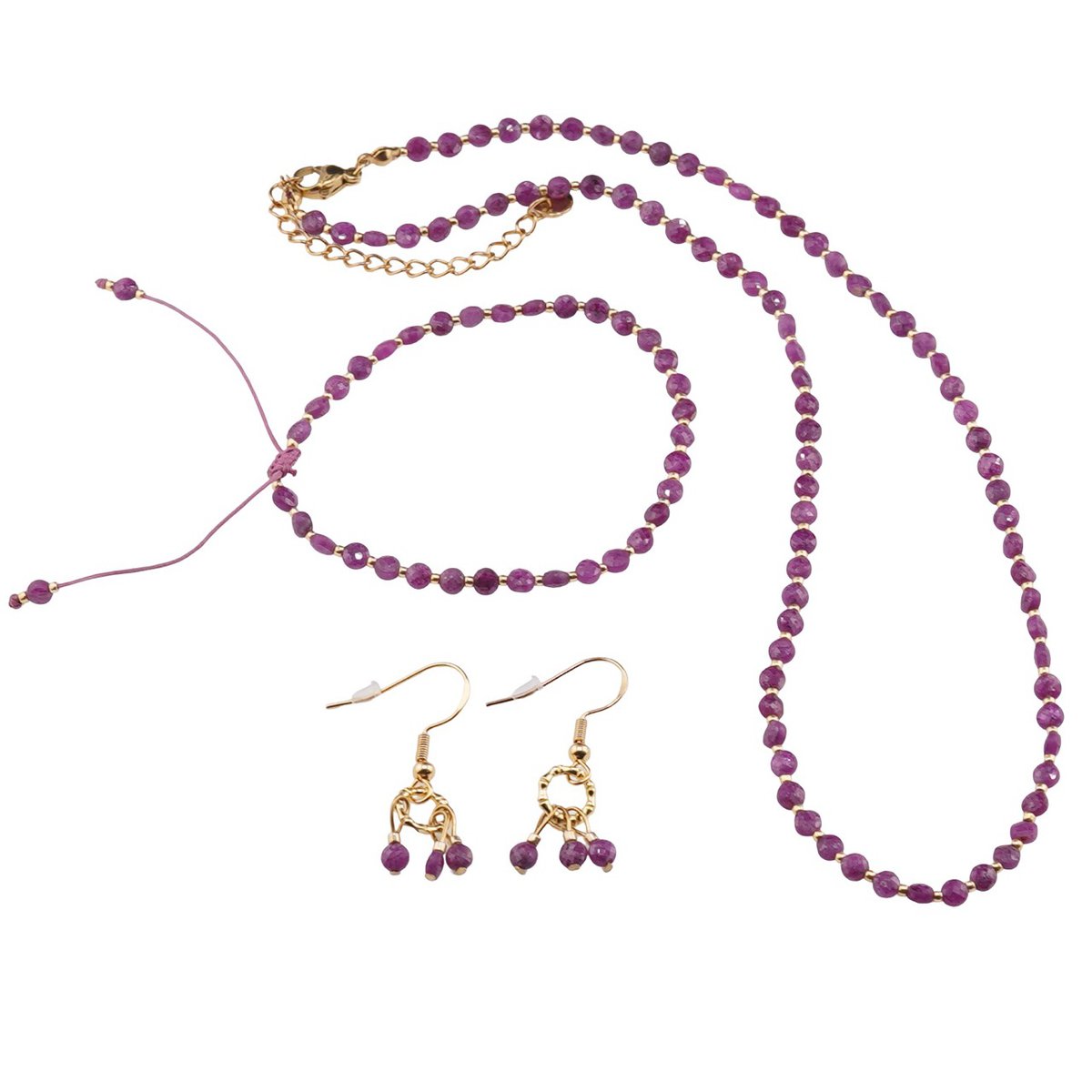 Set cercei cu agatatoare, bratara si colier Rubin banuti extrafatetati cu elemente aurii, 4mm