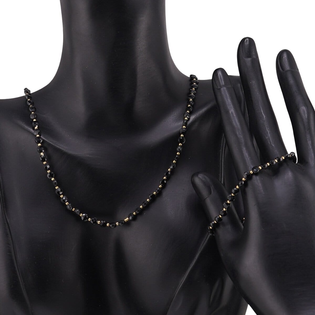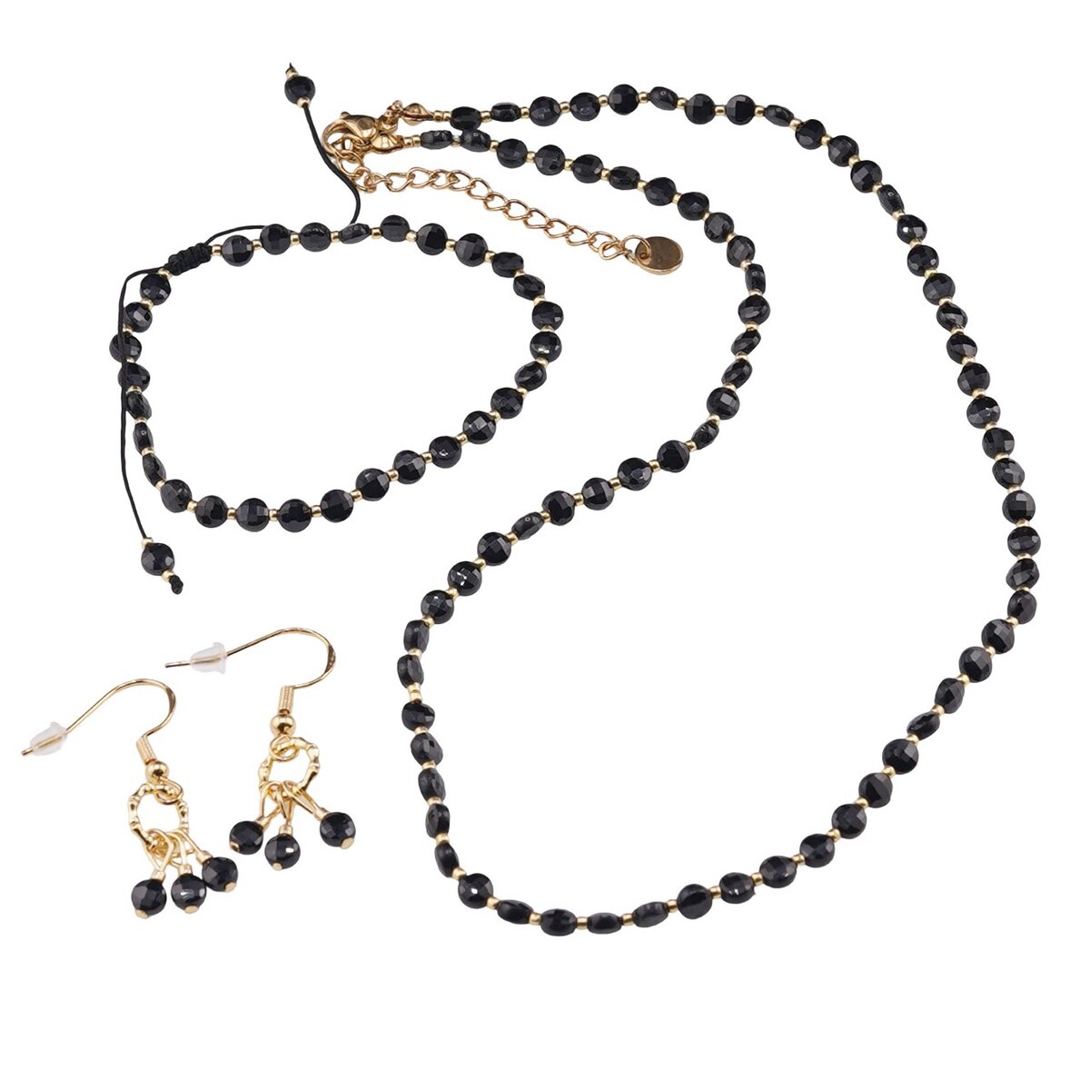 Set cercei cu agatatoare, bratara si colier Spinel banuti extrafatetati cu elemente aurii, 4mm
