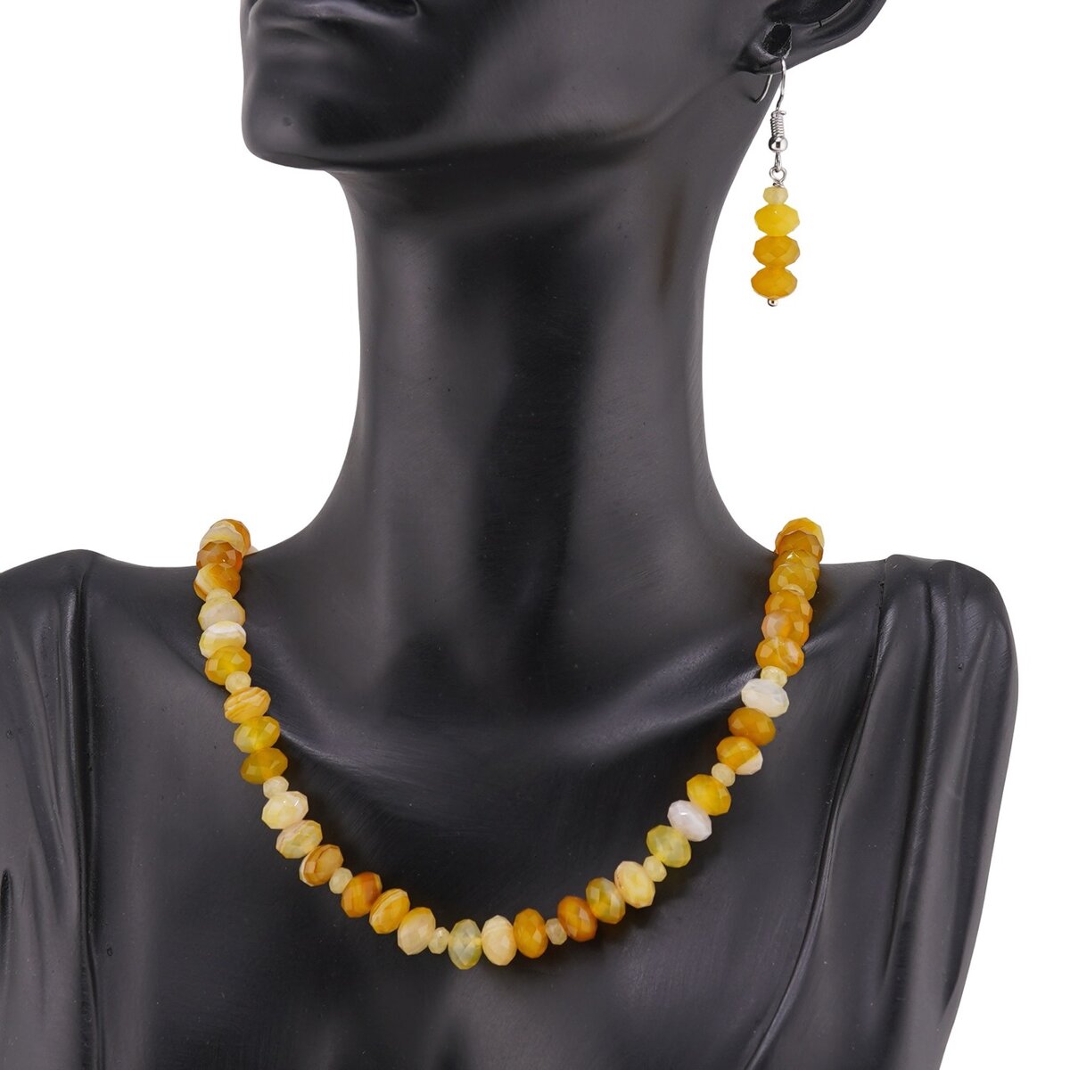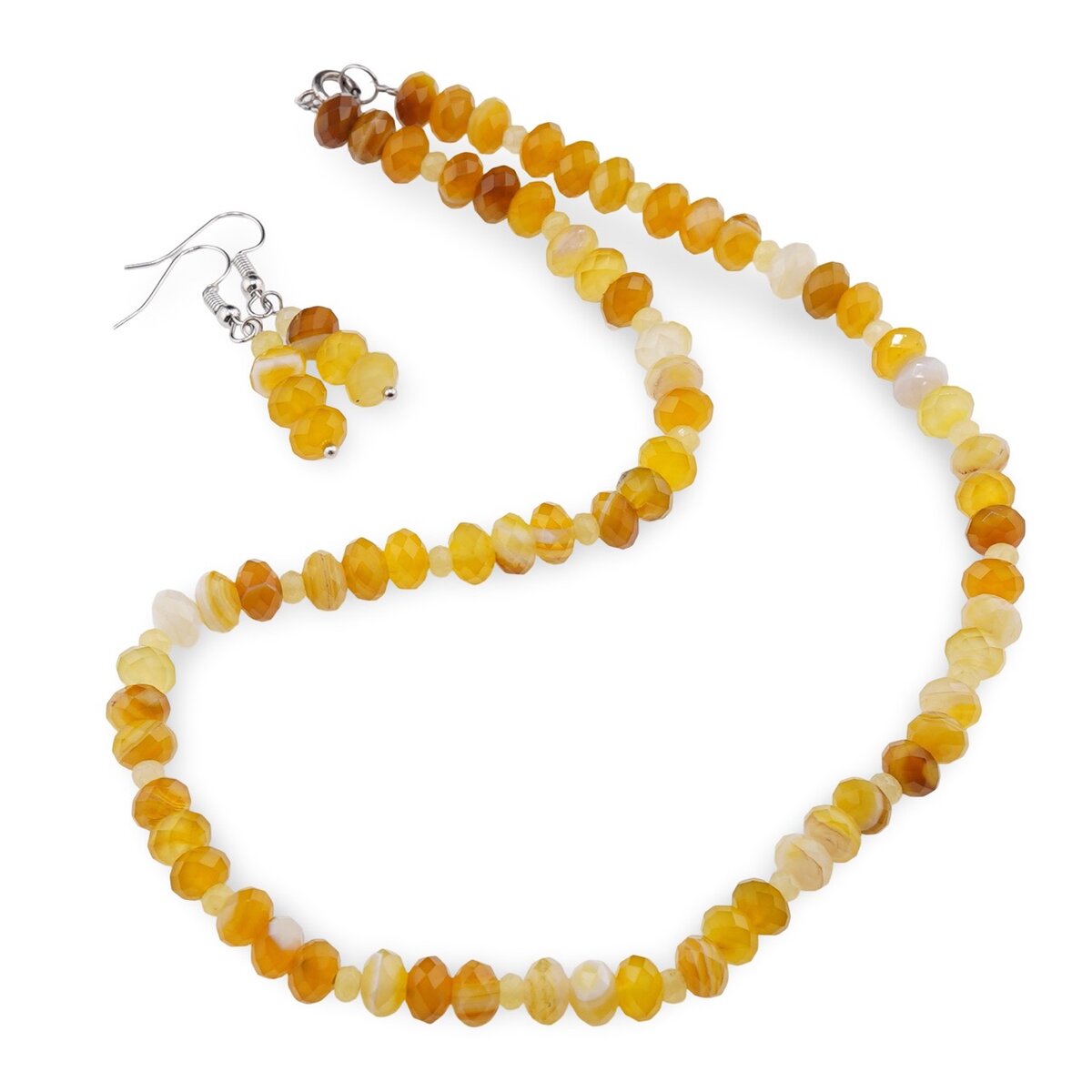 Set Cercei cu agatatoare si Colier din Agat galben discuri fatetate 8mm si discuri fatetate 4mm